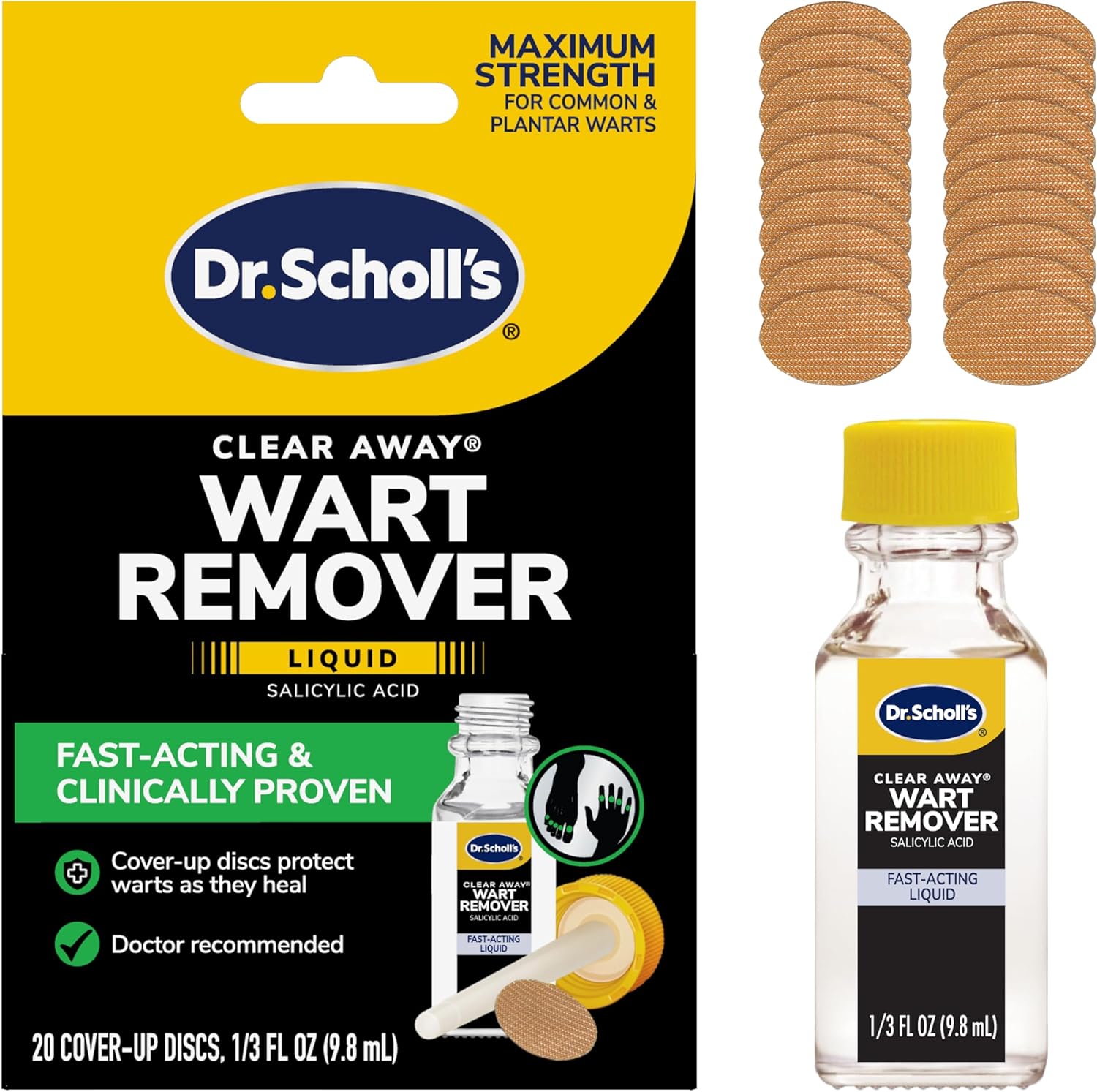 Dr. Scholl’s Clear Away Wart Remover Liquid offers a clinically proven solution for removing common warts on fingers and toes. The fast-acting liquid formula is easy to apply and dries quickly, providing targeted treatment where it’s needed most. Made with the highest strength wart remover available without a prescription, this wart remover delivers powerful results at home. Each pack includes 20 cover-up discs to help protect the treated area during healing by reducing friction and irritation. Safe for use on children ages 4 and up, it’s a convenient and effective option for the whole family’s wart treatment needs.