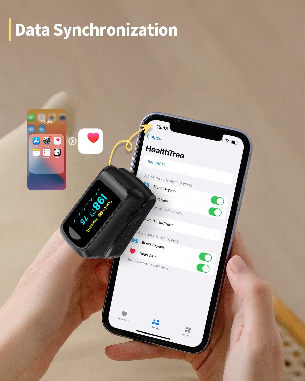 Pulse Oximeter Blood Oxygen Monitor Fingertip HealthTree Bluetooth Pulse Ox with Free APP, O2 Pulse Oximeter Finger and Heart Rate Monitor
