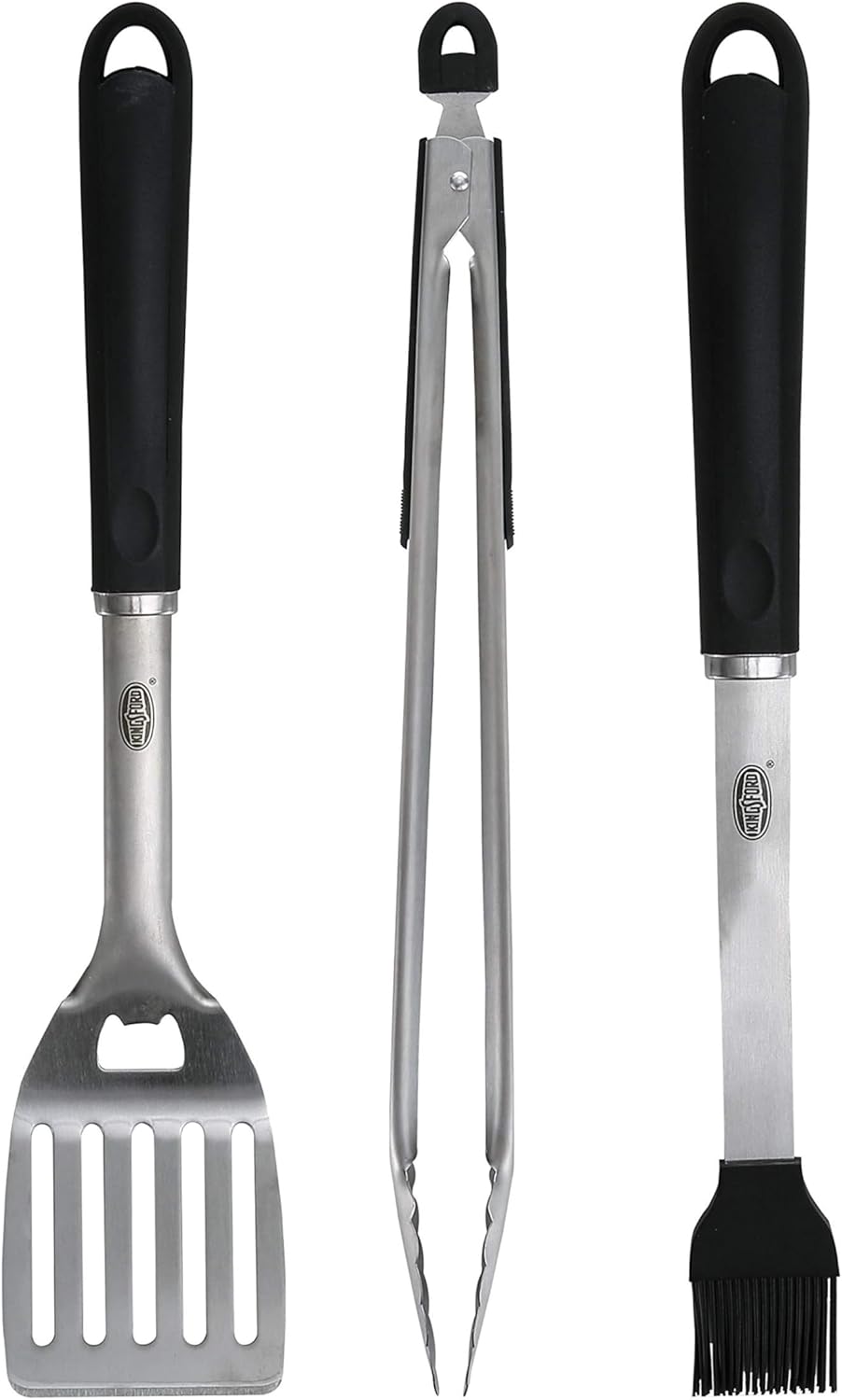 Kingsford Stainless Steel 3-Piece BBQ Tool Set | Tongs, Basting Brush, Spatula | Rust-Resistant Grilling Tools