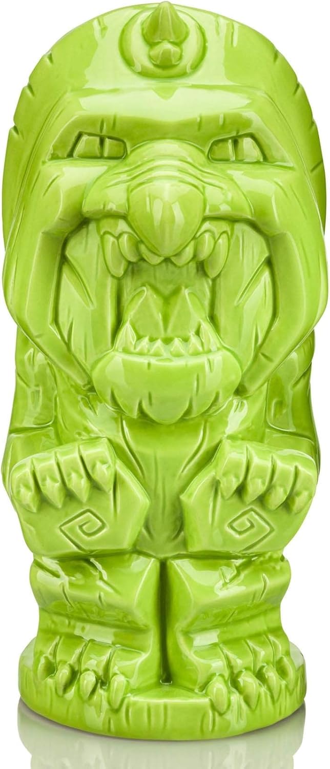 Iconic Design: Based on He-Man's mighty steed, this collectible Geeki Tikis mug depicts Battle Cat in his classic armored form. Combining fun tiki styling, this tropical mug features vibrant green coloring that will give your drinkware some flair.