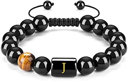 FRG Initials Bracelets for Men Letter Link Handmade Natural Black Onyx Tiger Eye Stone Beads Braided Rope Meaningful Bracelet