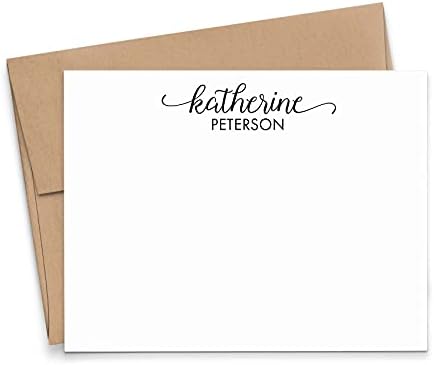 This personalized stationery set features your first name in a fun script font and your last name in a classic block font that is printed across the top front of these flat note cards so your personalized stationery will leave an impression and get compliments from the recipient. Choose your colors to make a stationery set that is your own.≡≡≡≡ ITEM DETAILS ≡≡≡≡ - Choose your set size using the options to the right - Your choice of envelope color - A2 size FLAT note cards - 4.25 x 5.5 inches - Digitally flat printed on heavy 110lb., smooth, white, cover weight paper - Packaged in a clear sleeve ( set of 10), Packaged in clear acrylic box (set of 20+) - Option to gift wrap during checkout ≡≡≡≡ HOW TO PERSONALIZE ≡≡≡≡ 1) Click on OPTIONS above the add to cart button 2) Choose Ink & Envelope colors 3) Fill out requested personalization details 4) After you are done, click ADD TO CART and complete purchase ≡≡≡≡ ADD ONS ≡≡≡≡ - Return Address: Return address will be printed in BLACK ink when choosing a colored envelope. If you choose a white envelope, return address ink will match the stationery ink choice. Please Note: Name and Address will be formatted in 3 lines as shown in the example image OR 2 lines if you only provide an address. ≡≡≡≡ COORDINATING ITEMS ≡≡≡≡ Personalized Notepad: https://www.amazon.com/dp/B07KMHMCV