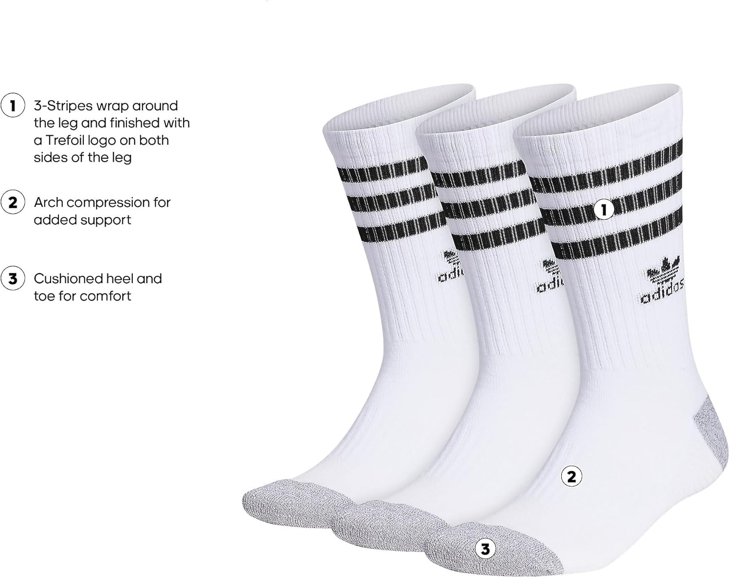 Mantén el estilo old school con estas clásicas medias de crew de adidas. Hilos suaves y elásticos, y una suela acolchada en el talón y la punta son cómodas para el uso diario. Las 3 Tiras envolventes y los logotipos de Trefoil añaden un auténtico estilo deportivo.