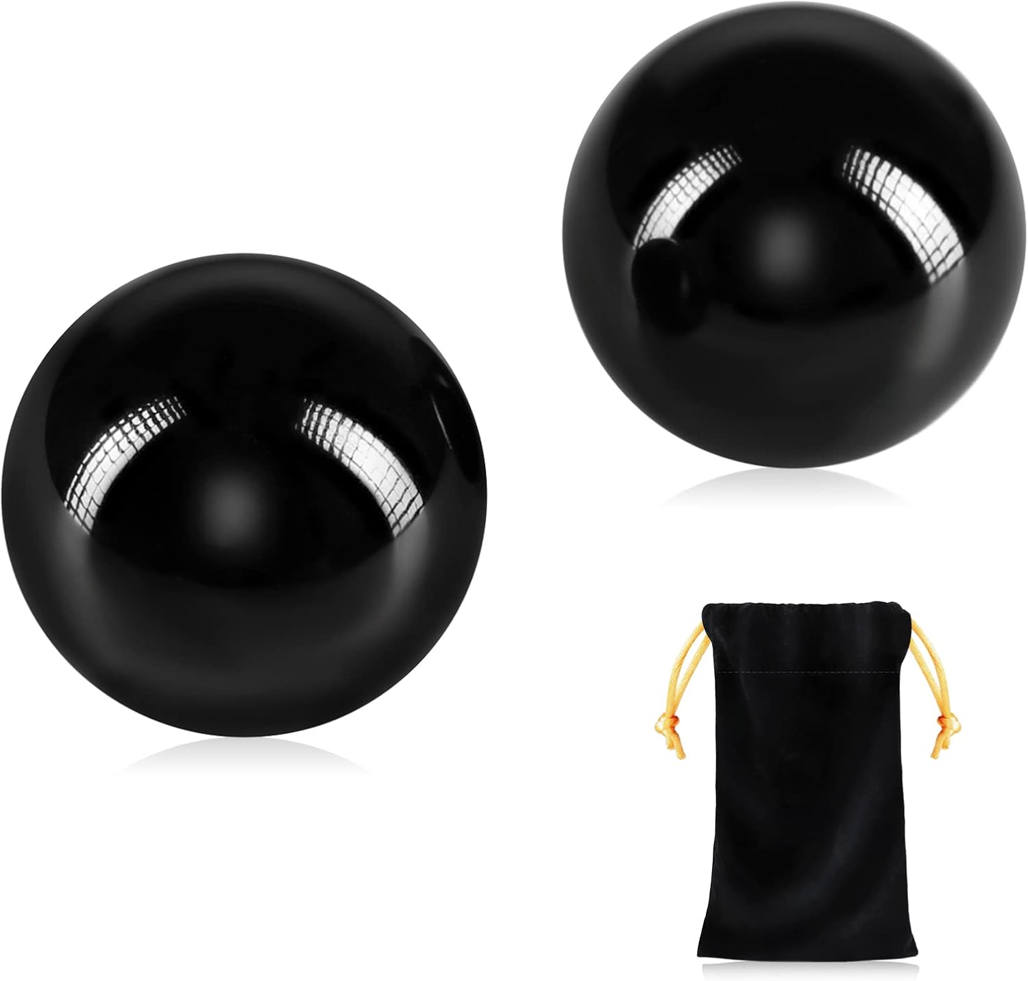 2PCS Bolas de Baoding de Obsidiana Negra, Bolas de Masaje para Ejercicio de Salud Chinas con Bolsa de Transporte para Bolas de Ejercicio de Mano para Alivio del Estrés (Negro/2 pulgadas)