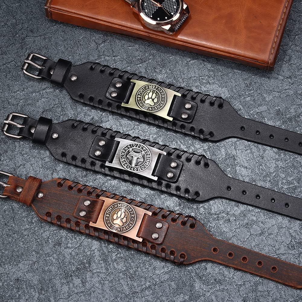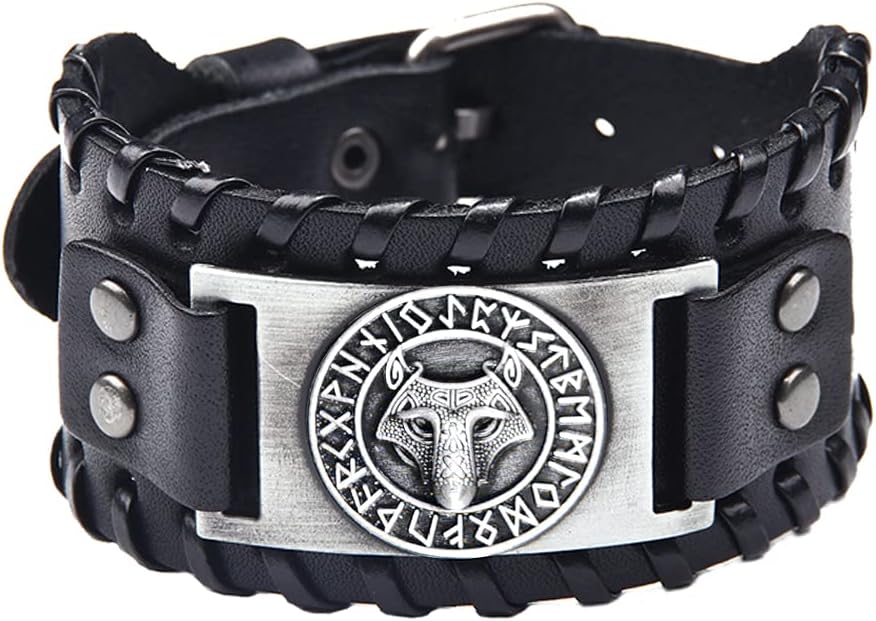 TURTLEDOVE Viking Wolf Leather Bracelet - Norse Viking Runes Amulet - Celtic Pagan Jewelry of Talisman