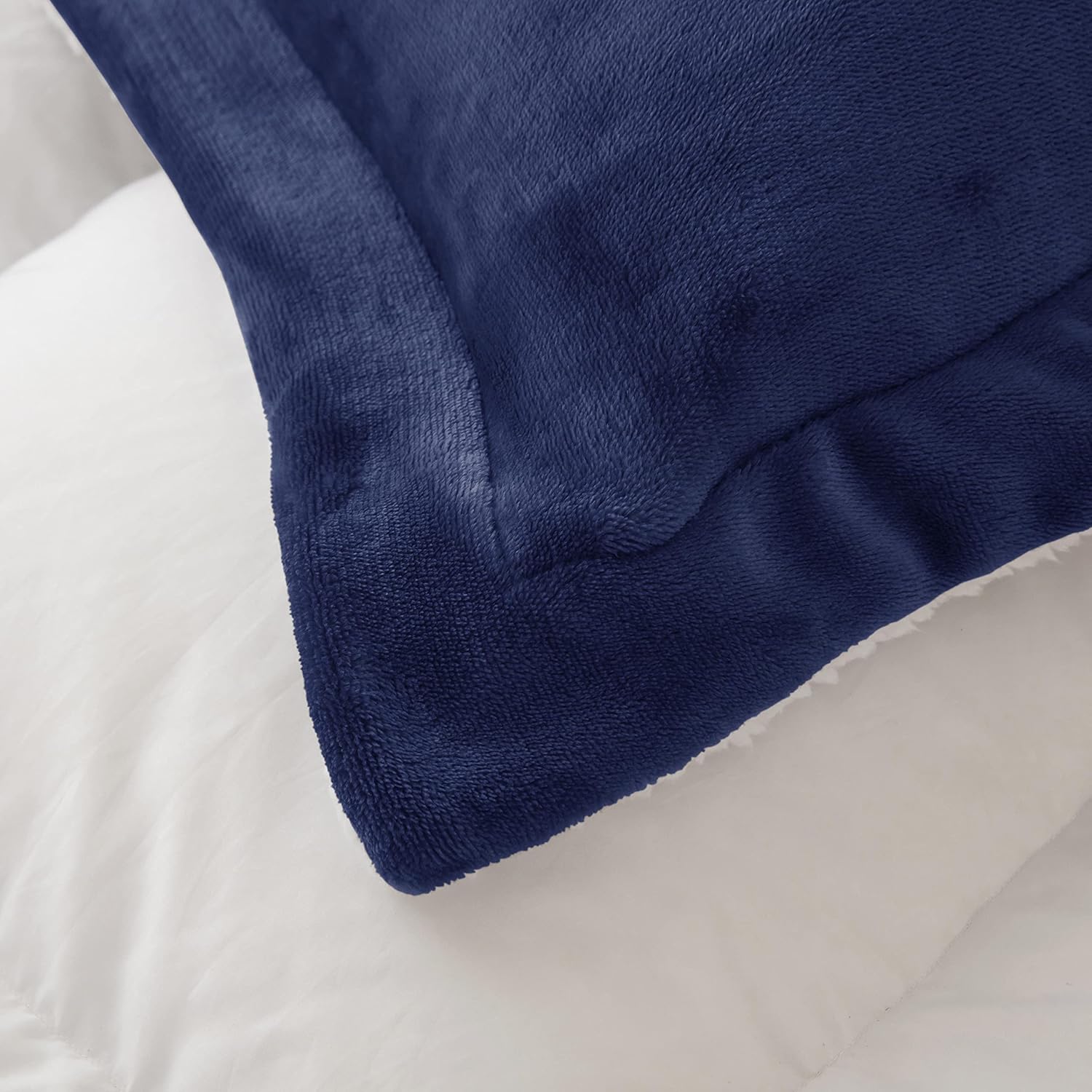 Seward Park Navy Blue Sherpa Comforter Set Full Queen Size, All Season Soft Warm Fleece Fall Blanket, Winter Bedding Sets with 2 Pillow Shams