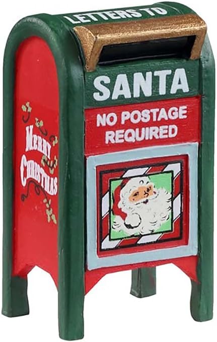 Buzón navideño de la colección Lemax Lemax # 14842 No se requiere franqueo para este buzón de correo. Este buzón rojo y verde envía cartas directamente a Papá Noel. En la parte delantera del buzón hay una imagen grande de San Nicolás y en el lateral del buzón se lee Feliz Navidad. Es el lugar perfecto para dejar tu lista de deseos navideños. Dimensiones aproximadas (alto x ancho x profundidad): 1,85 x 0,94 x 0,75 pulgadas (4,7 x 2,4 x 1,9 cm) Año de lanzamiento: 2021 Fabricado en: metal Tipo de producto: Otros accesorios