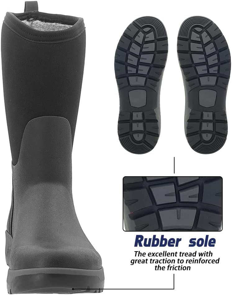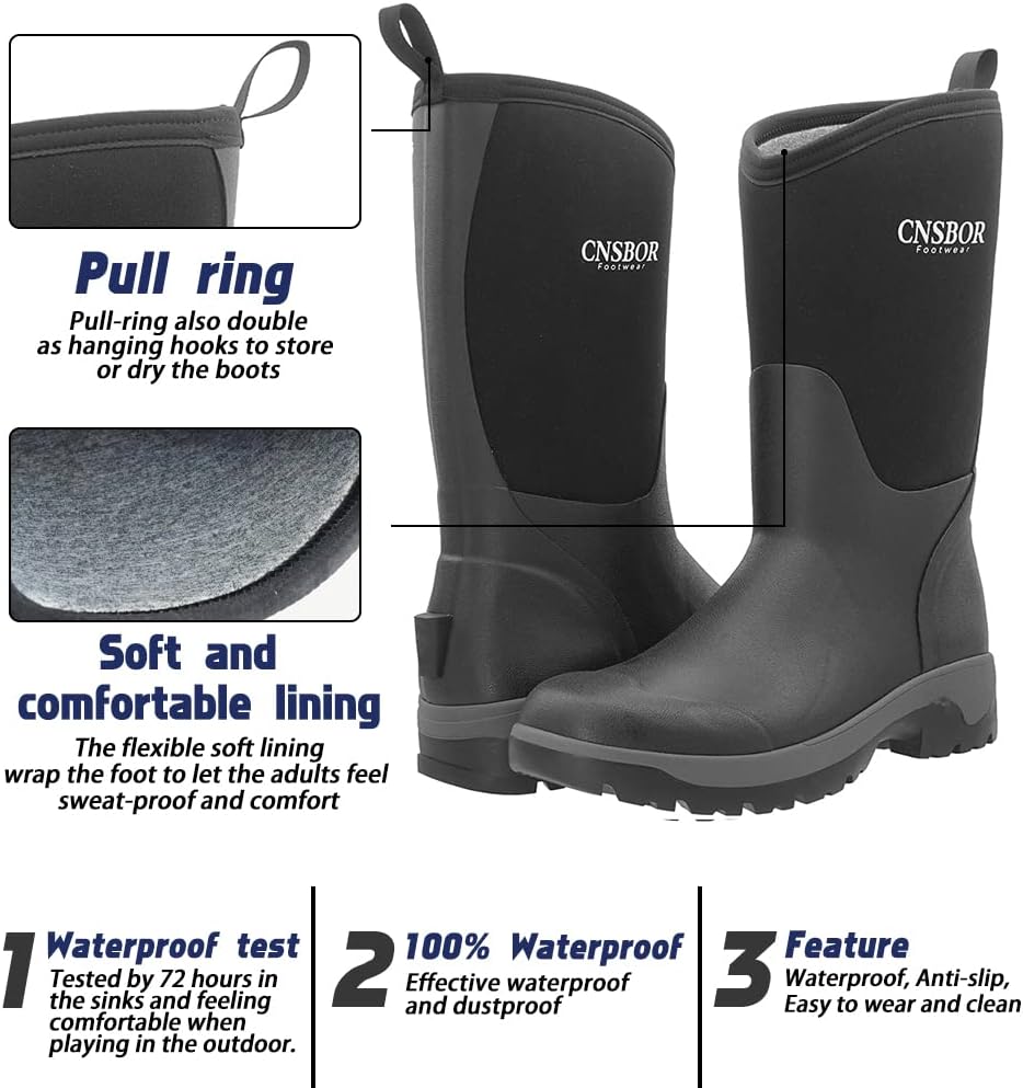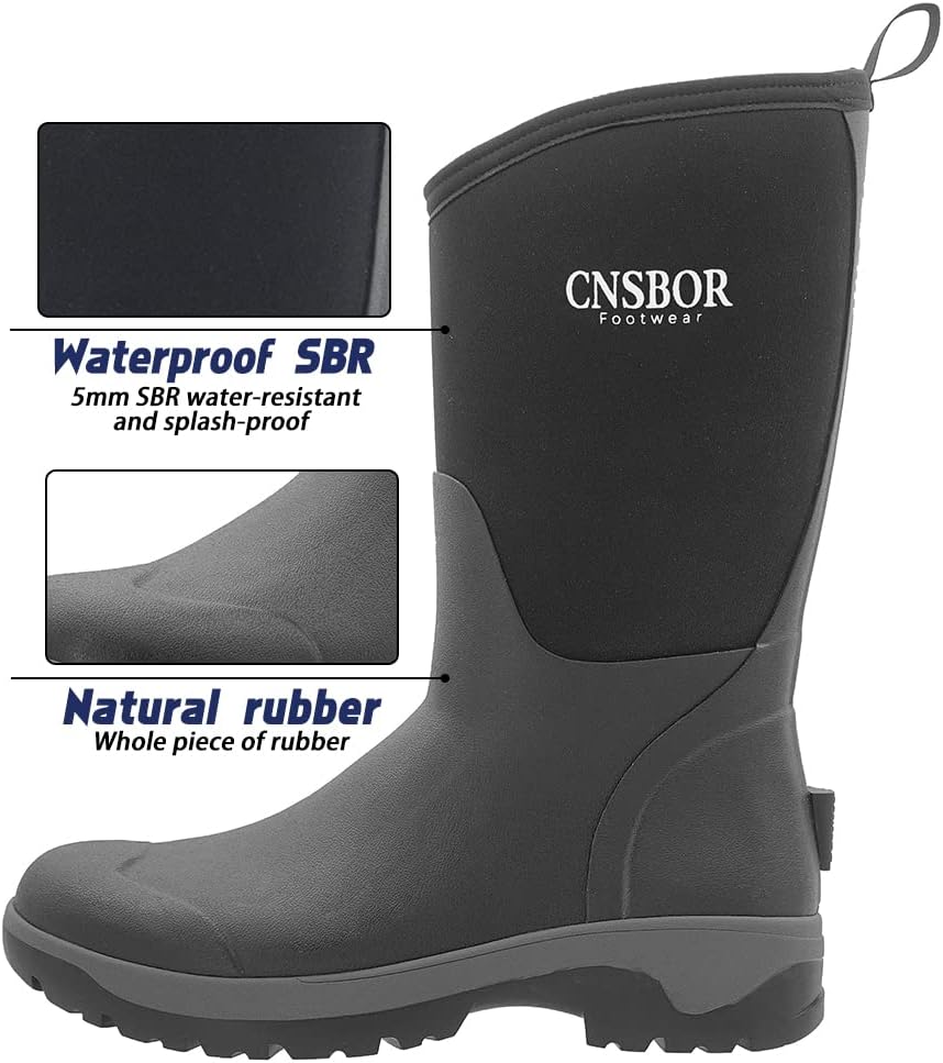 CNSBOR Men's Rain Boots - Waterproof Rubber Insulated Boots for Fishing, Agriculture & Industrial Working