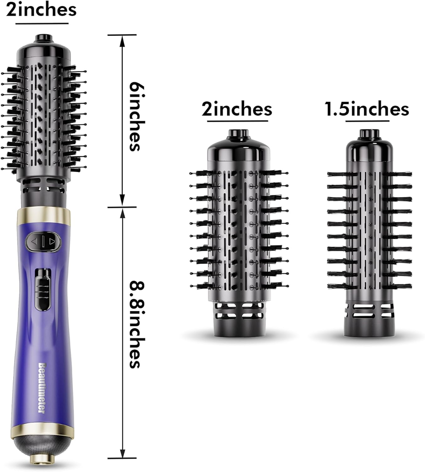 Interchangeable Brushes: The hair blow dryer brush comes with two interchangeable spin brushes; 1.5-inch diameter barrels for short hair or layered hair, and 2-inch diameter barrels for shoulder-length or long hair