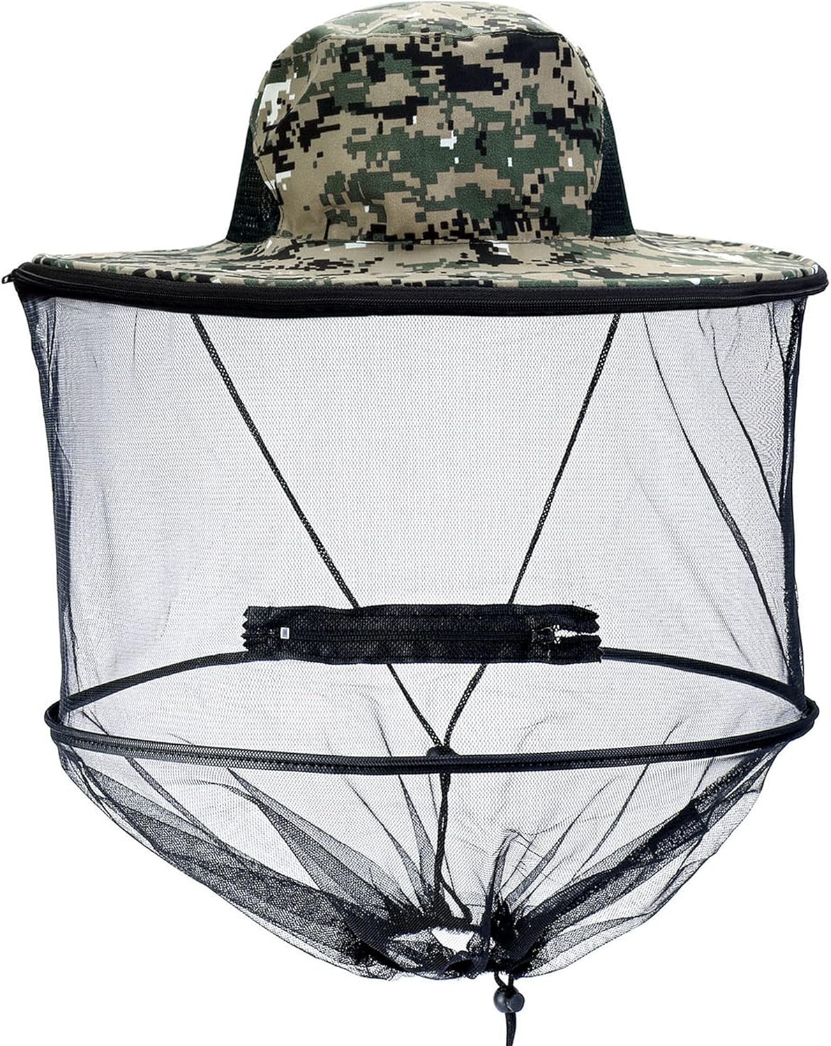 CozyCabin Mosquito Head Net Hat with Removable Mesh Hidden Netting, Camouflage Design with Zipper Net for Outdoor Fishing Gardening Hiking Face Cover (Digital Camouflage)