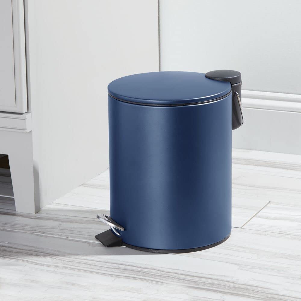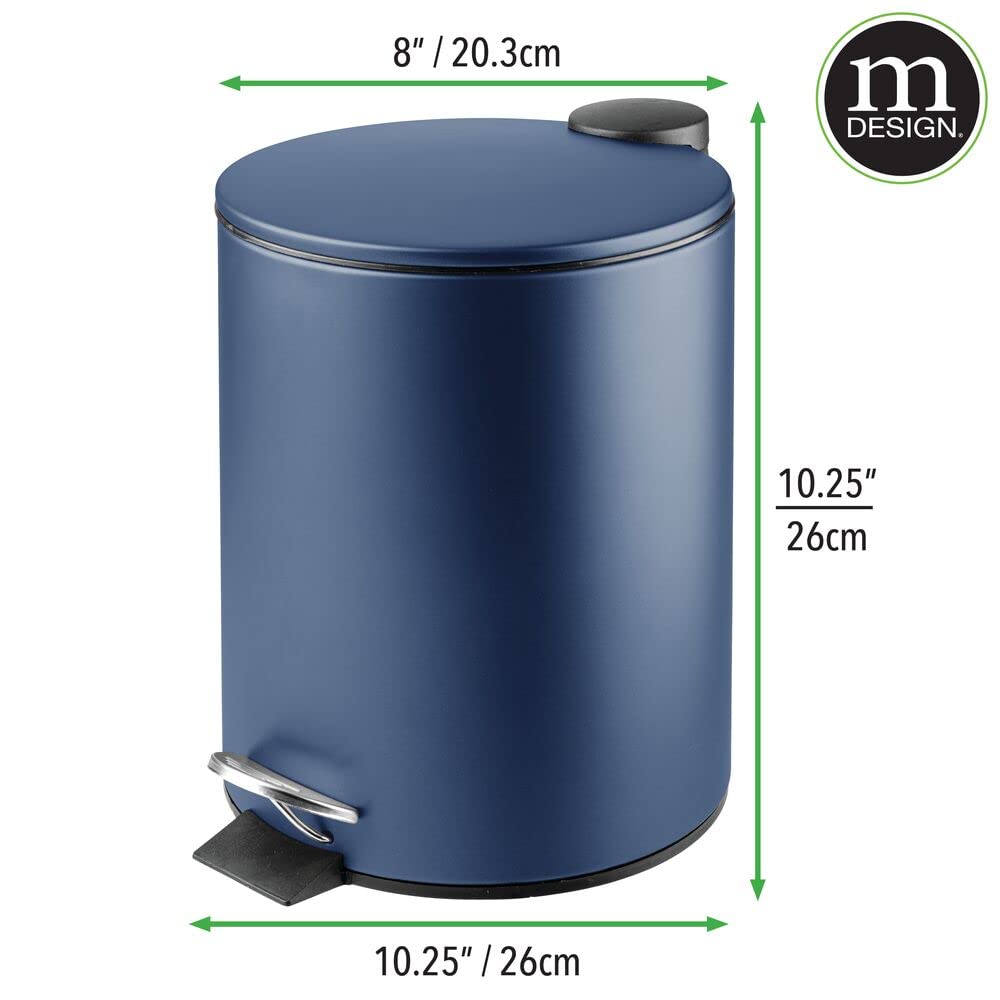 mDesign Metal 1.3 Gallon/5 Liter Round Step Trash Wastebasket, Garbage Container Bin with Lid for Bathroom, Powder Room, Bedroom, Kitchen, Craft Room, Office - Removable Liner Bucket - Navy Blue