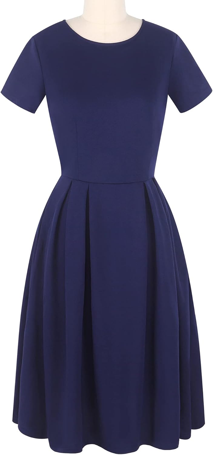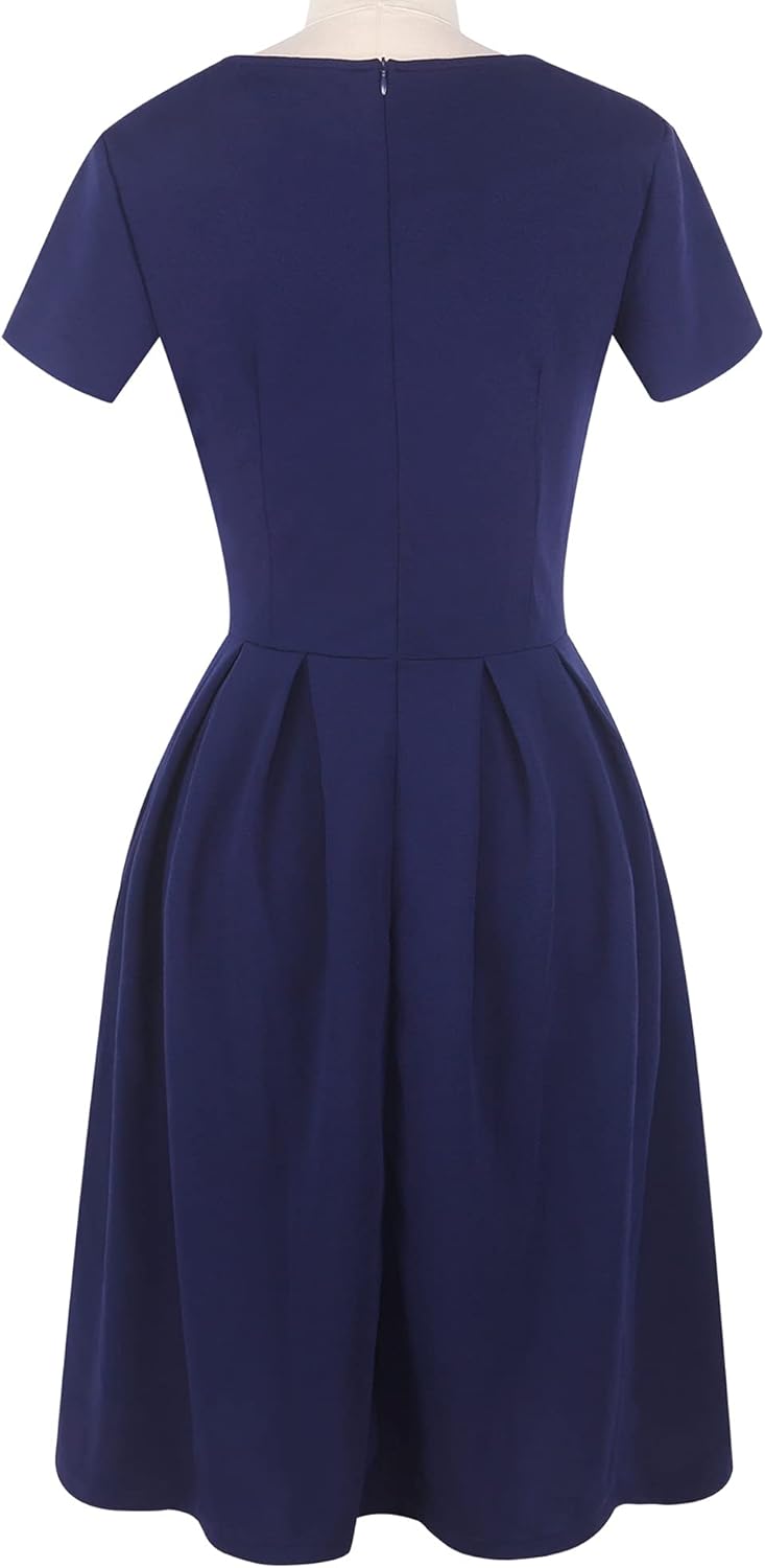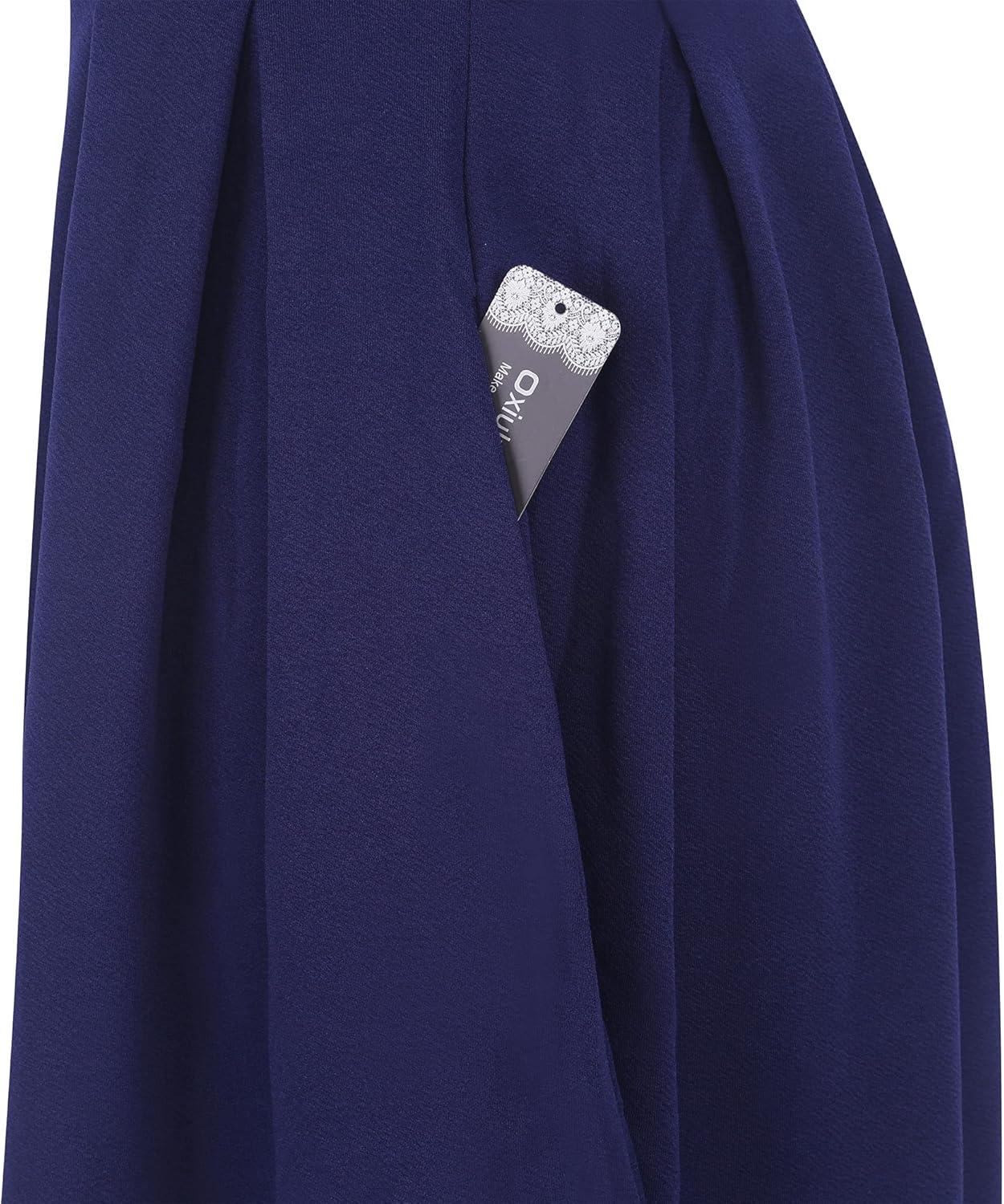 oxiuly Women's Vintage Patchwork Pockets Puffy Swing Casual Party Dress OX165