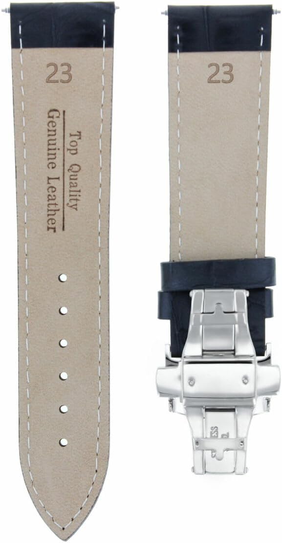 The item for sale is a brand new strap made of the finest Italian pattern genuine leather in Black color with butterfly deployment clasp.It will fit your Victorinox Classic Chronograph 241651 watch which has 23mm lugs.This Black strap is made of genuine premium Italian leather, Quality leather with decor, black thread stitching and thick 4mm padding for nice look. It will fit up to an 8 inch wrist.Deployment clasp is made of 316L stainless steel.It will fit watch with 23mm at lugs with 20mm at the buckle.Width at Lugs: 23mmWidth at Buckle: 20mm Length:Long part: 115mm (4.6 inch )Short part: 75mm ( 3 inch )You get complete sets of genuine leather straps and stainless steel deployment buckle and it comes with 2 free spring bars. Available in 18mm, 19mm, 20mm, 21mm ,22mm , 23mm and 24mm in black, orange, light blue, blue, dark blue, navy, grey, tan, orange, light brown , dark brown color and they are listed in our store for you to purchase. All Customers Please Read The Following Before Purchasing: Be sure to check our detailed measurement guide below or in the photos/images section of the listing to assist you with purchasing the correct parts for your watch. The guide will show you how to measure the lug width opening of your watch using a ruler, how to check your model number, and assist you with other questions you may have regarding measurement. Many watches appear the same but may be different in case size or year model. This will help to avoid any returns or exchanges. We are also an email away to assist with any questions you may have. Thank you for your business! We sell only the best quality replacement watch parts and accessories for your watch.Visit our online store for a huge selection of other watch parts.