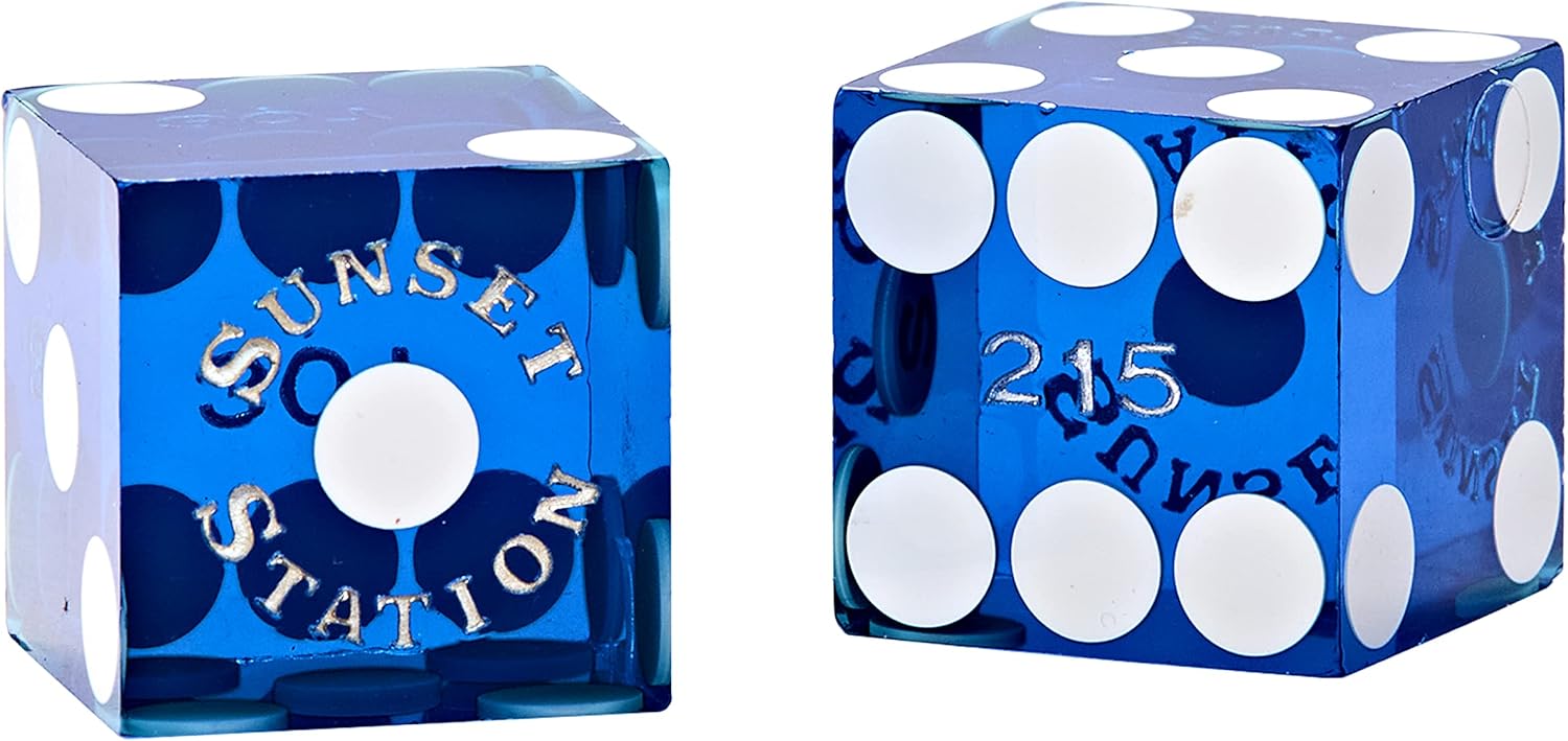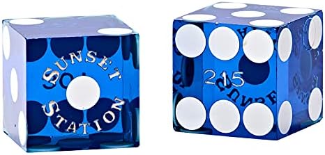 Authentic Used Casino Craps Dice from Las Vegas Sunset Station - Blue Polished - 6-Sided, Large, 19mm, Professional Grade with Serial Numbers, 2 Piece Set for Poker, Bunco, Farkle & Left Right Center