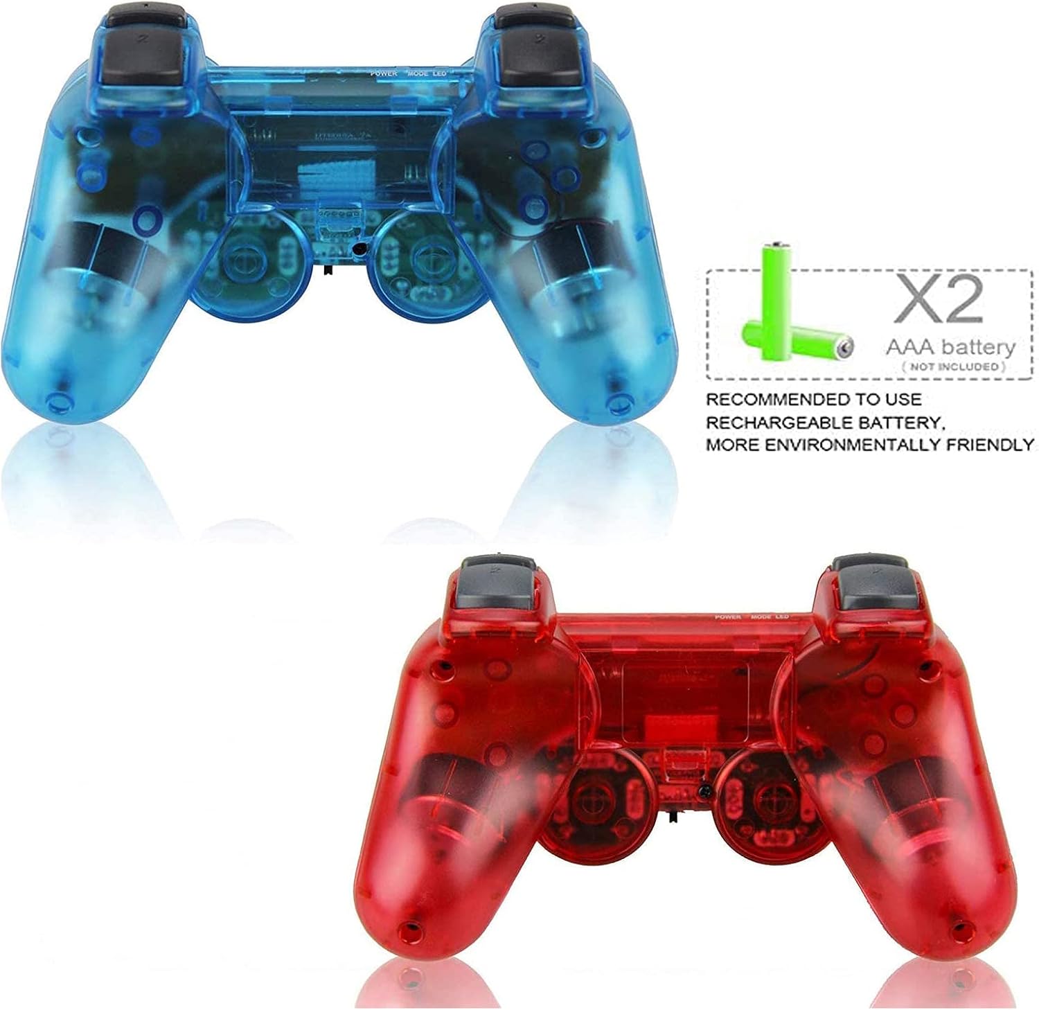 Mando inalámbrico para PS2, joystick integrado de doble vibración 2.4G Gamepad compatible con Playstation 2, con receptores inalámbricos (azul claro y rojo claro)