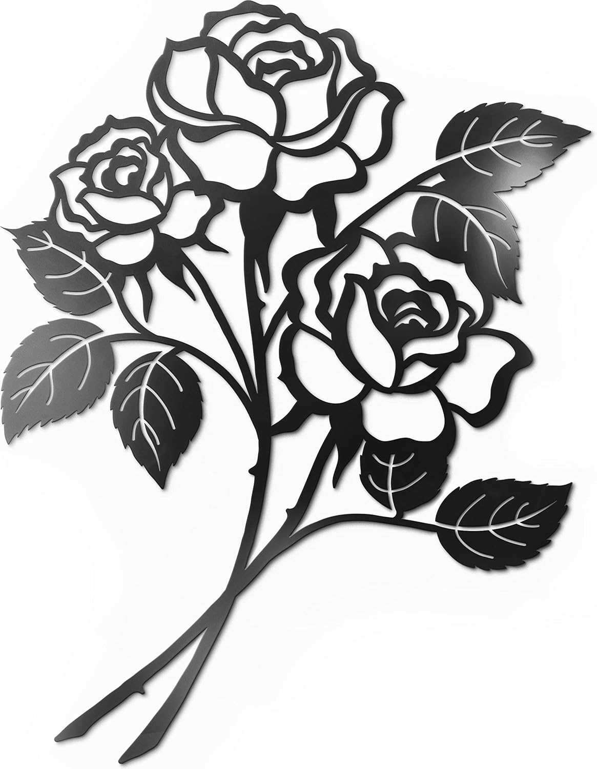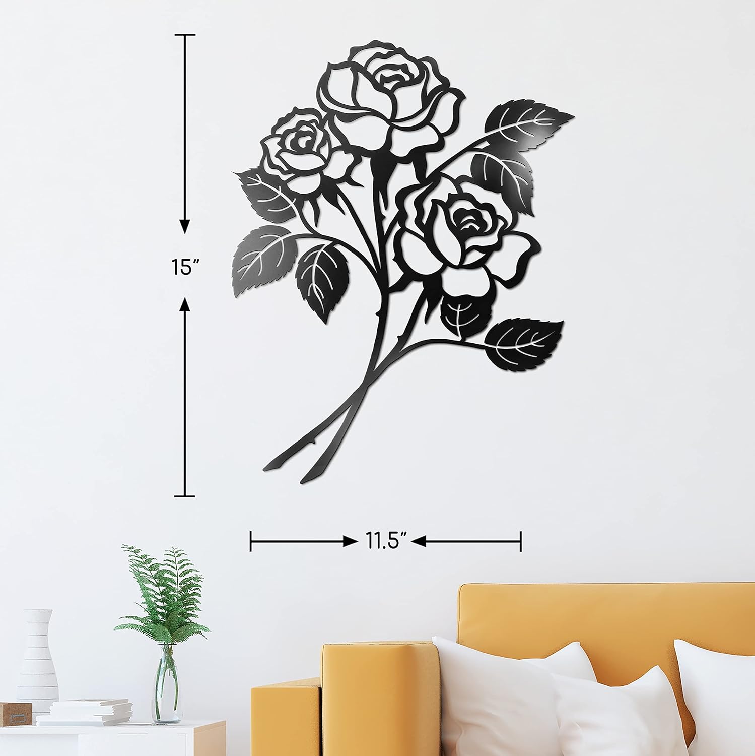 Vivegate Rose Black Metal Art - Flower Wall Decor for Living Room Giant Roses (Medium - 15"X11.5")