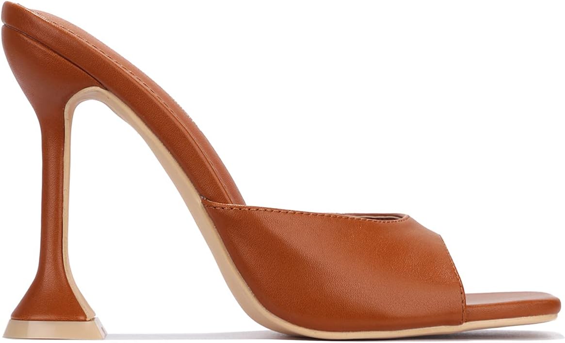 Cape Robbin Lithe Nude Sexy High Spool Heel Open Squared Toe Slip On Pumps