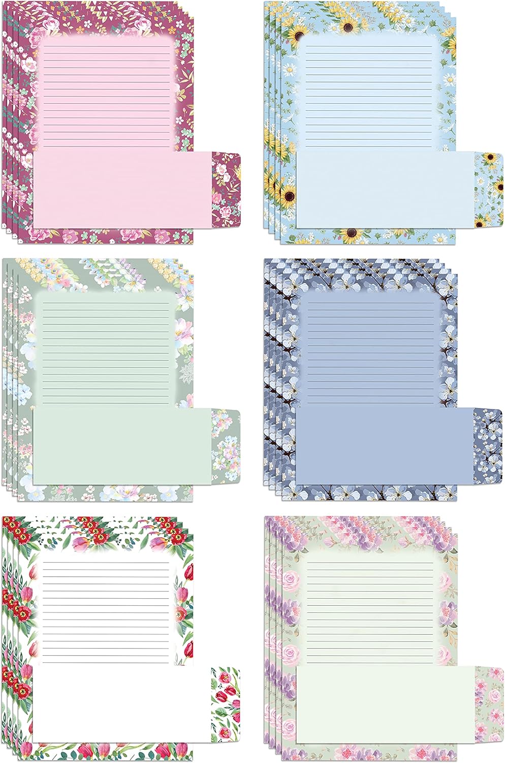 Better Office Products Floral Paper Stationery Set, 100 Piece Set (50 Lined Sheets + 50 Matching Envelopes), Letter Size 8.5 x 11 inch, 6 Designs, Double Sided/Lined Printing Paper,