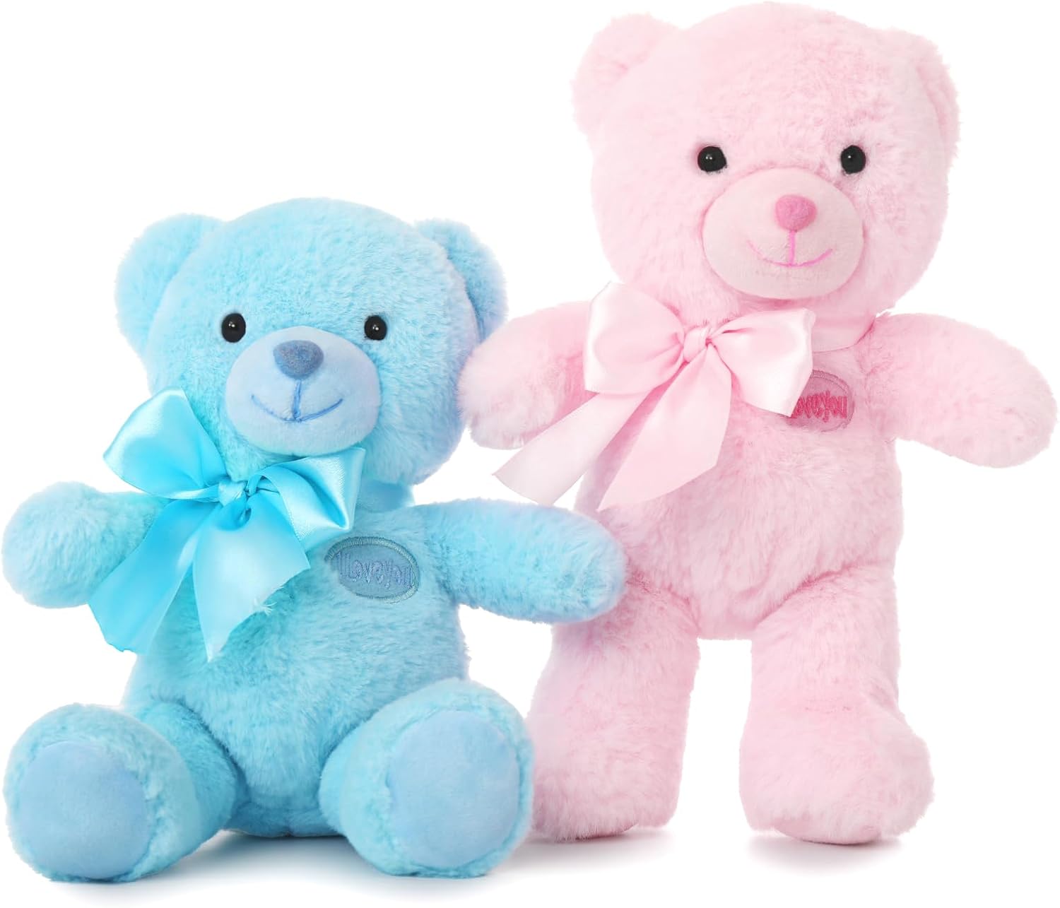 El paquete contiene 2 ositos de peluche, colores: rosa y azul, tamaño: 12 pulgadas.