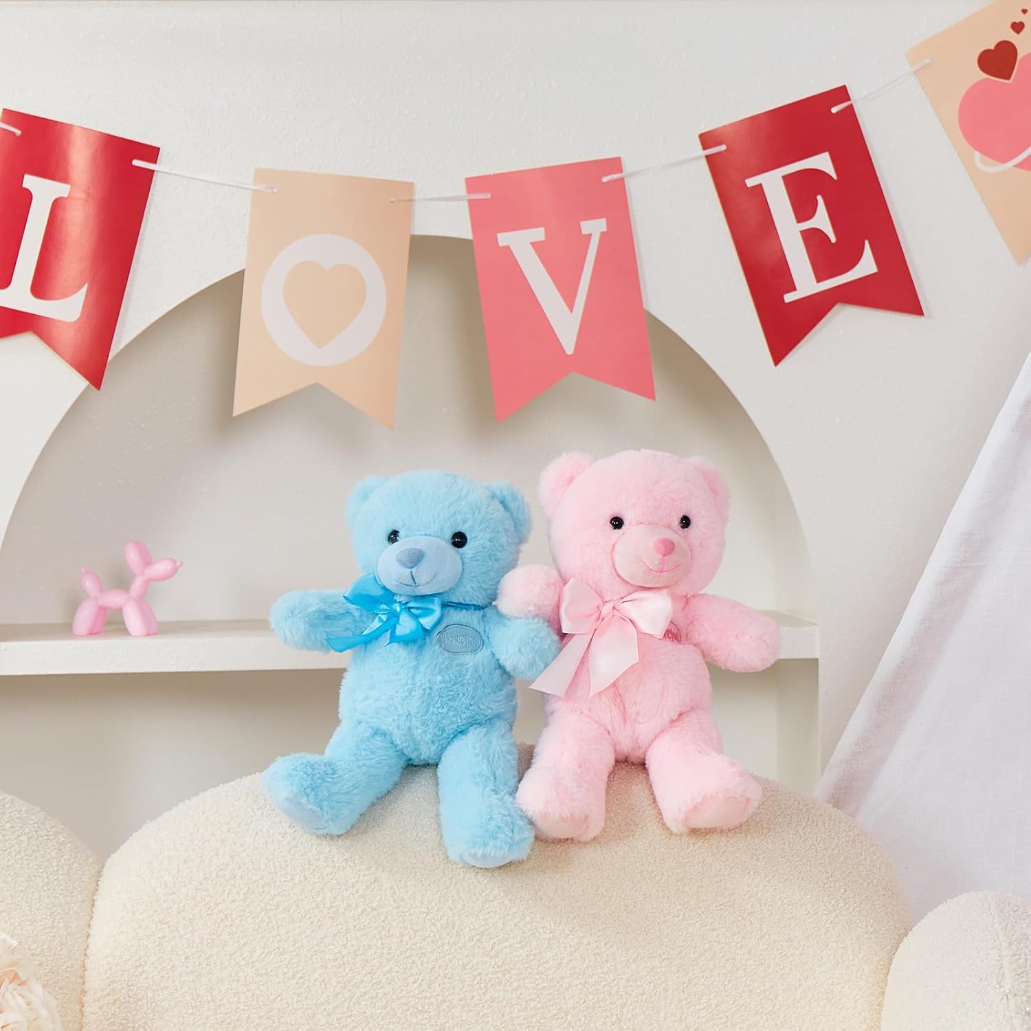 Diseño único: este juego de peluche de osito de peluche es una combinación de un osito de peluche azul y rosa. El suave osito de peluche tradicional rosa claro y suave con lazo de satén rosa/azul lleva bordado «I LOVE YOU» en el pecho del suave osito de peluche para expresar tu amor.