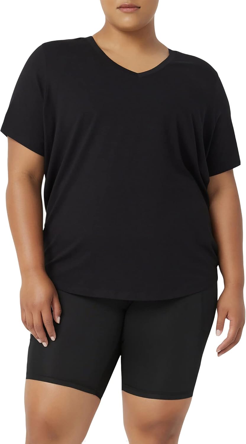 The FILA Plus Size Expression V-Neck Top will pair with most things in your wardrobe, easily making it a new favorite. Lightweight and breathable fabric. V-neckline with short sleeve design. Straight hemline with durable construction. Fabric blend for soft and stretchy feel. 48% cotton, 47% modal, 5% spandex. Machine wash, tumble dry.