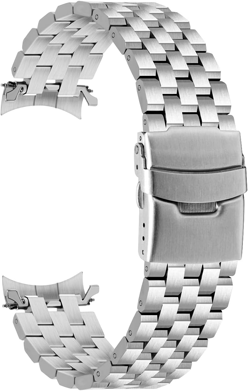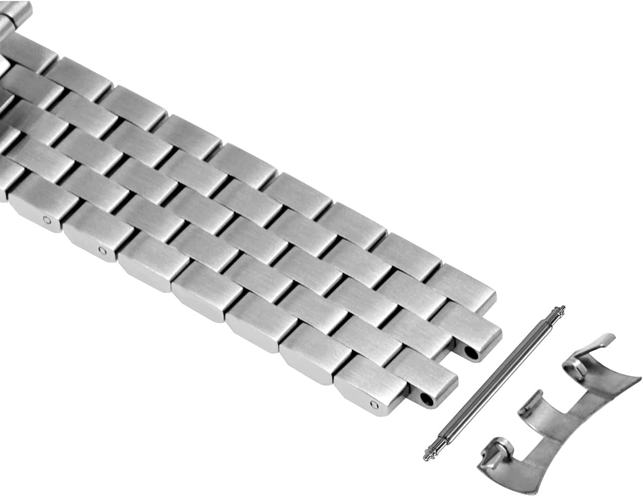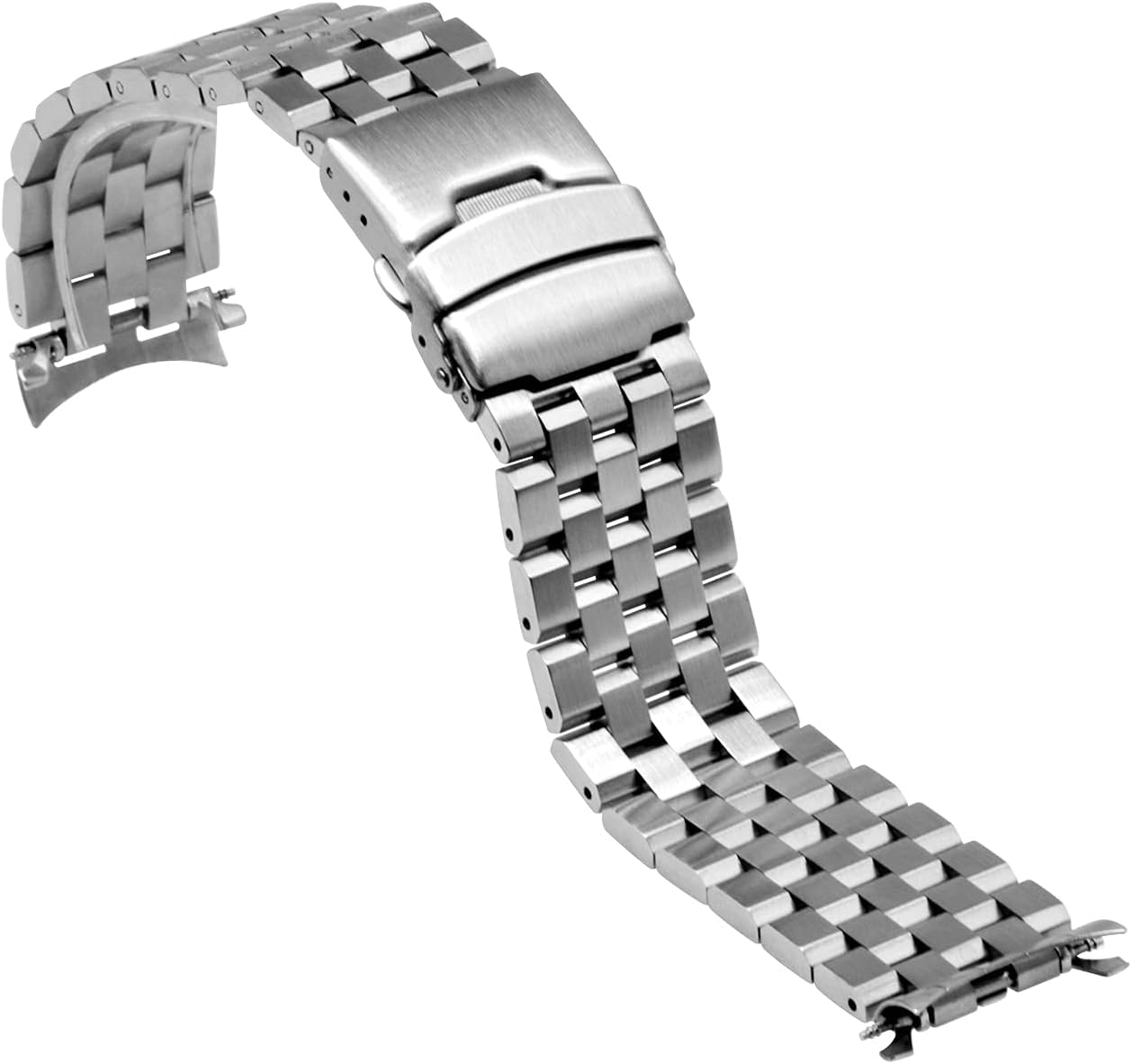 20mm 22mm Stainless Steel Watch Band Metal Watch Bands for Women Men Brushed Polished with Curved Ends Strap Replacement with Double FlipLock Buckle Adjustable Black Silver