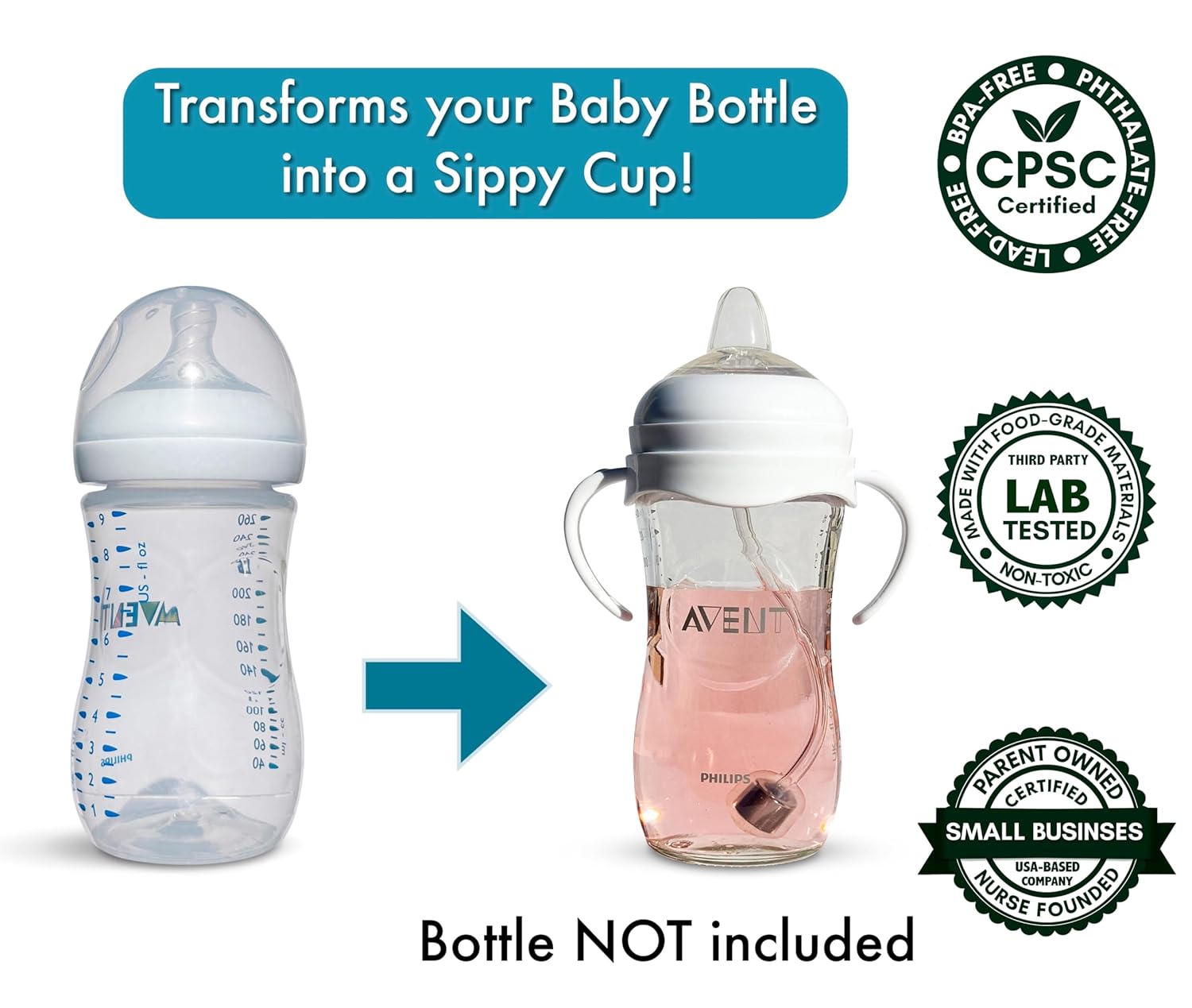 Beba en cualquier ángulo con la pajita lastrada (incluye un cepillo de limpieza para la pajita). Promueva la autoalimentación y la independencia con las asas de los biberones que se incluyen en el kit.