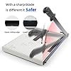 【Acerca de la hoja】-- Este cortador de papel contiene dos barras de acero, la superior y la inferior, y la barra superior está algo curvada para crear mejor fricción con la barra inferior durante el uso, lo que resulta en mejores resultados de corte