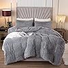 EMME Plush Shaggy Duvet Cover Set Queen Size 3 Pieces Fluffy Fuzzy Comforter Cover Set for Queen Bed Luxury Soft Bedding Duvet Covers (Grey, Queen)