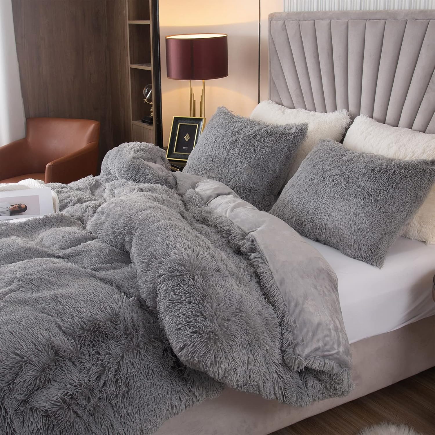 Premium Dual-Sided Comfort - One side features cozy, fuzzy long fur for ultimate warmth, while the other side is made of ultra-soft, skin-friendly crystal velvet. The EMME fluffy duvet cover provides warmth while preventing overheating, ensuring you a comfortable night's sleep.