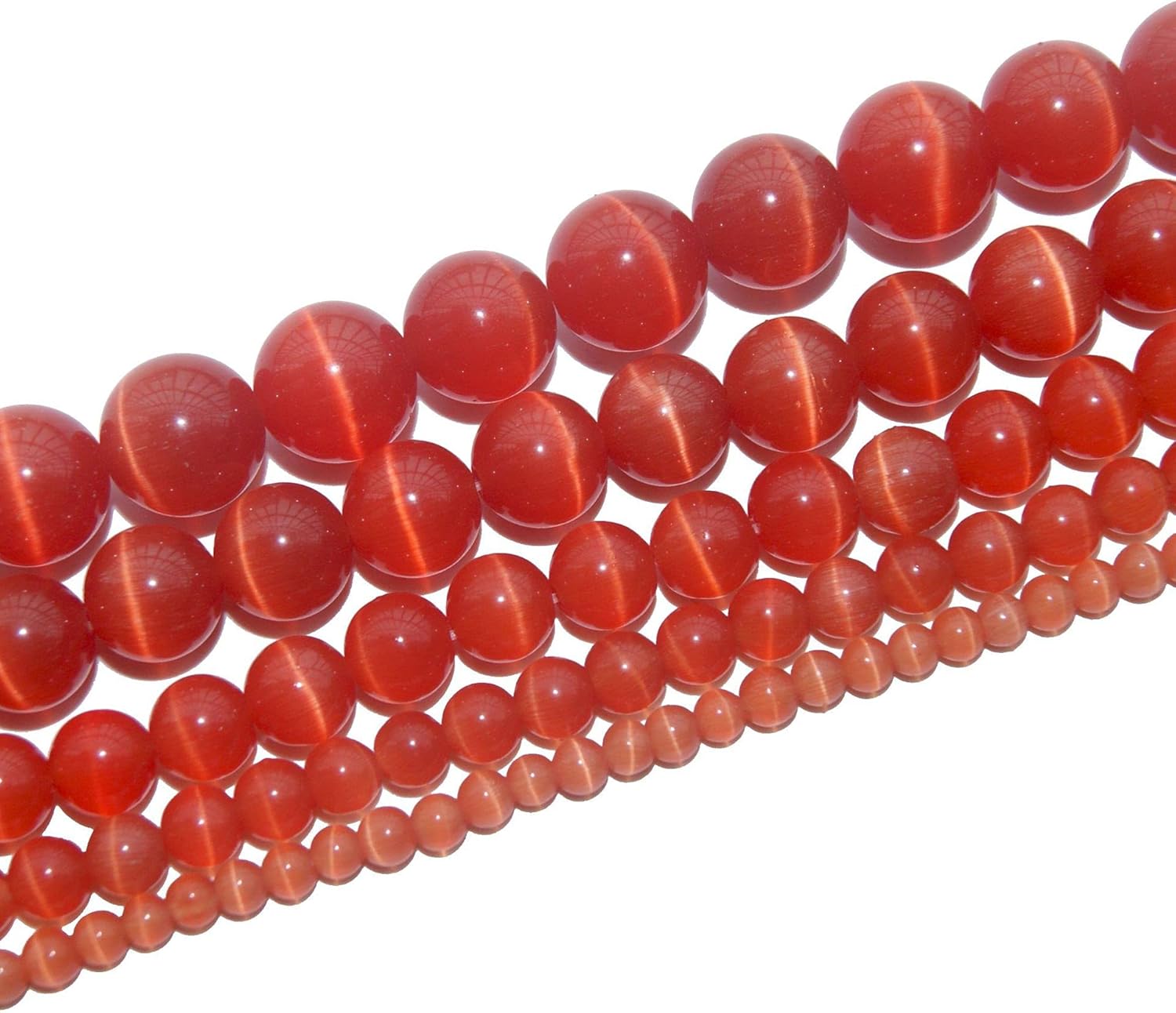 RAYLINEDO 48Pcs 8mm Natural Red Cat Eye Stone Round Beads Loose Beads for DIY Jewelry Making. 48Pcs 8mm cat eye stone round beads, well polished rough surface beads, 1str/bag. Size: diameter 8mm/0.315 inch, hole size: approx. 1.5mm/. Suitable for bracelets, necklaces, earrings and other jewelry making; a good choice to be as a gift for your friends, families, etc. Please note the brightness of the light is different, the display effect is different, each batch of stone material is different, which leads to the difference, each of which is unique. (the difference; color, eye, shade, stripes, shape)