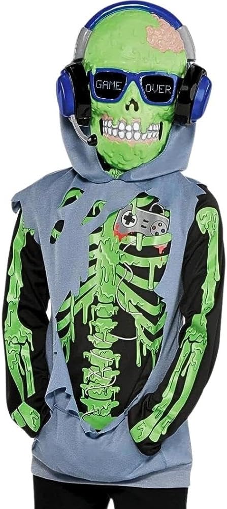 Conjunto de disfraz de Zombie Gamer para niños que brilla en la oscuridad - Talla mediana (8-10) 1 conjunto - Atuendo divertido y espeluznante de Halloween para fiestas y disfraces