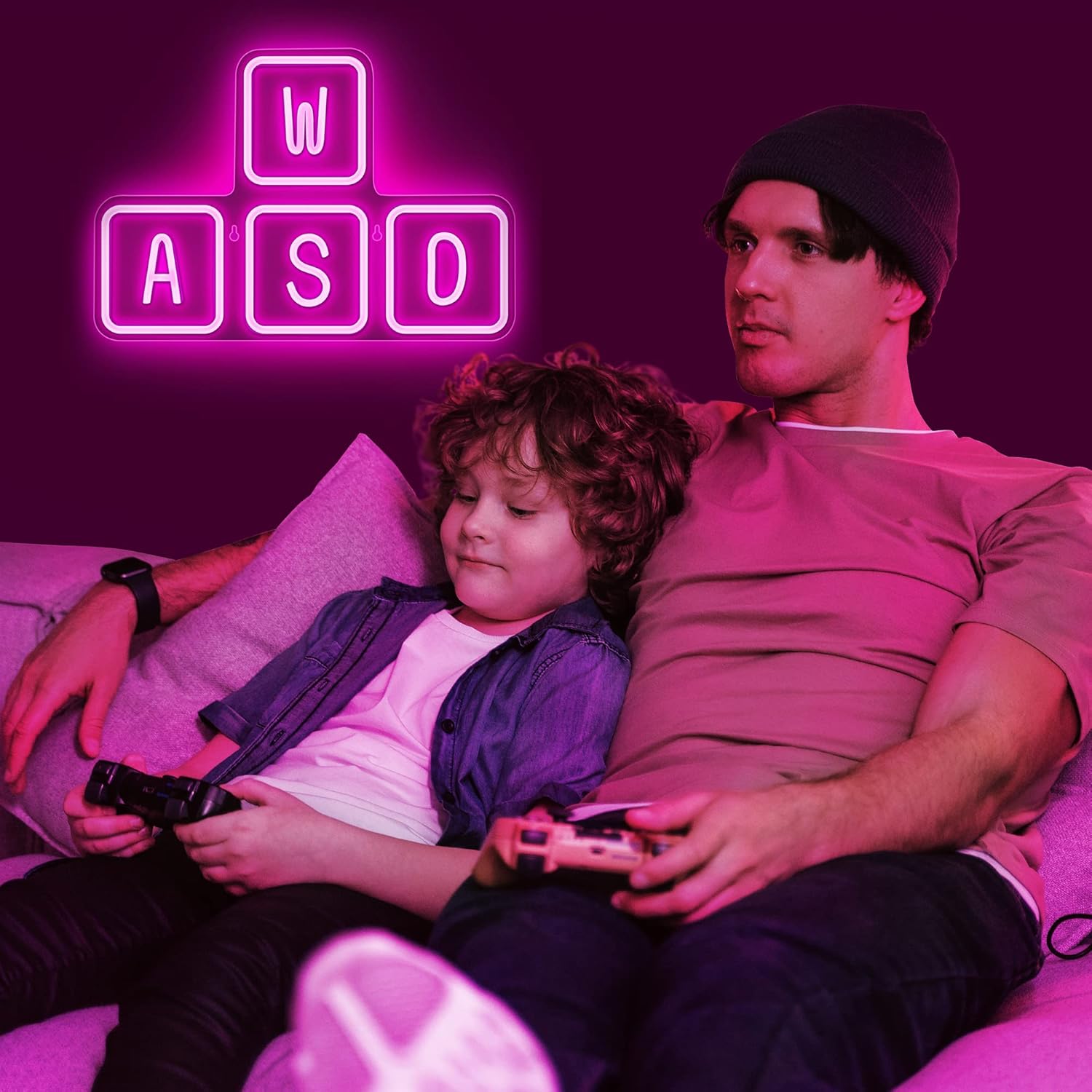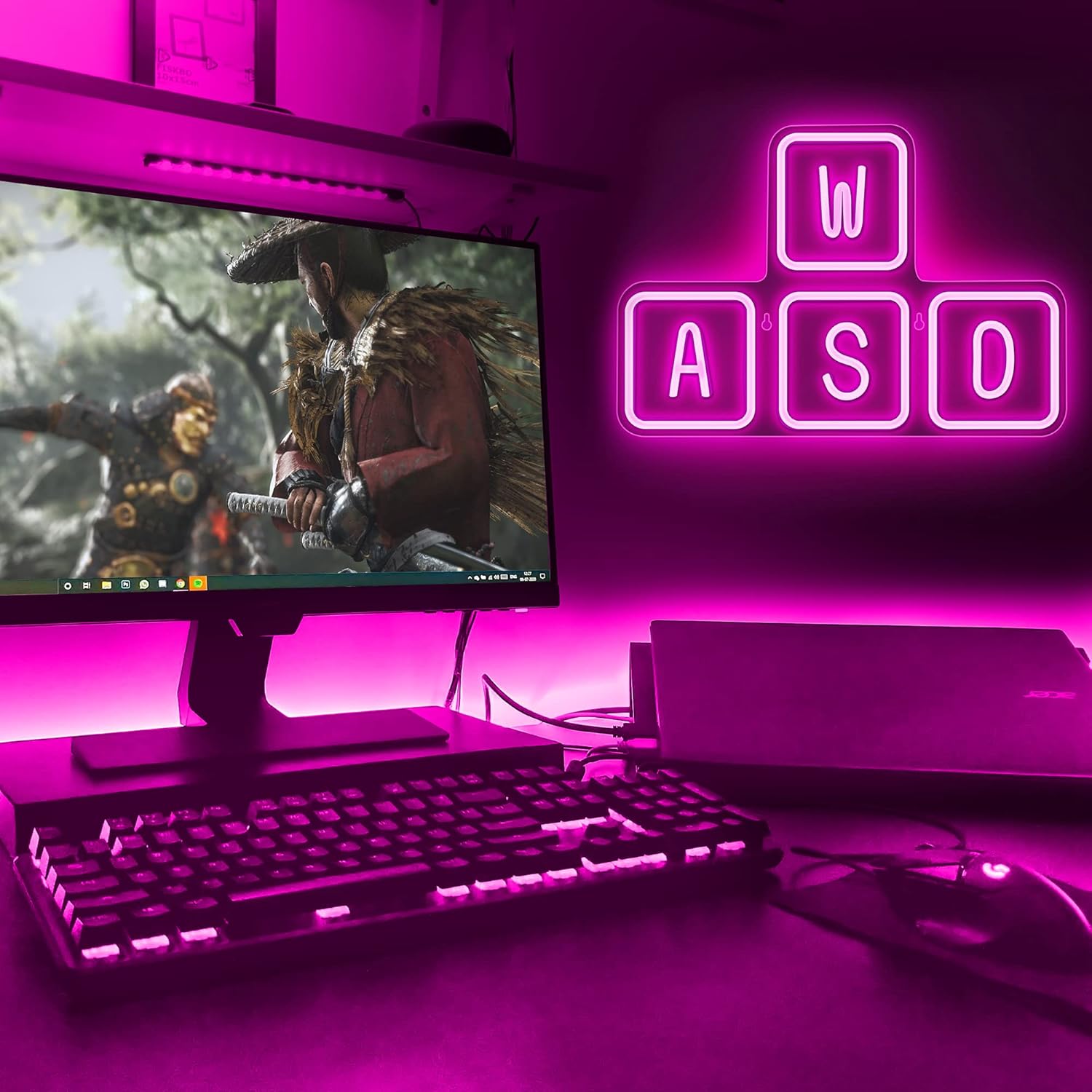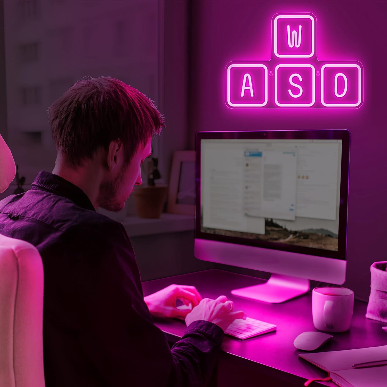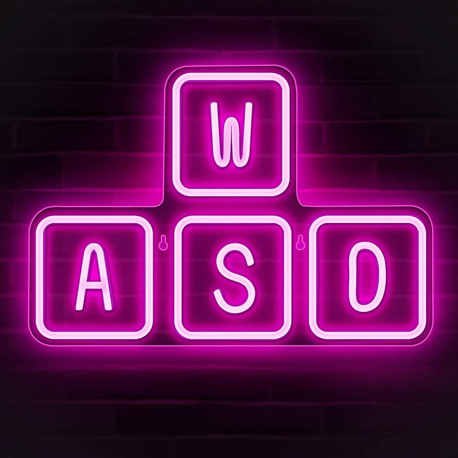Lumoonosity WASD Neon Sign - USB Powered Keyboard Neon Lights - WASD Keycaps Led Sign with On/Off Switch for Wall, Bedroom, Game Room Decor - Cool WASD Keys' Gaming Lights for Gamers, Streamers