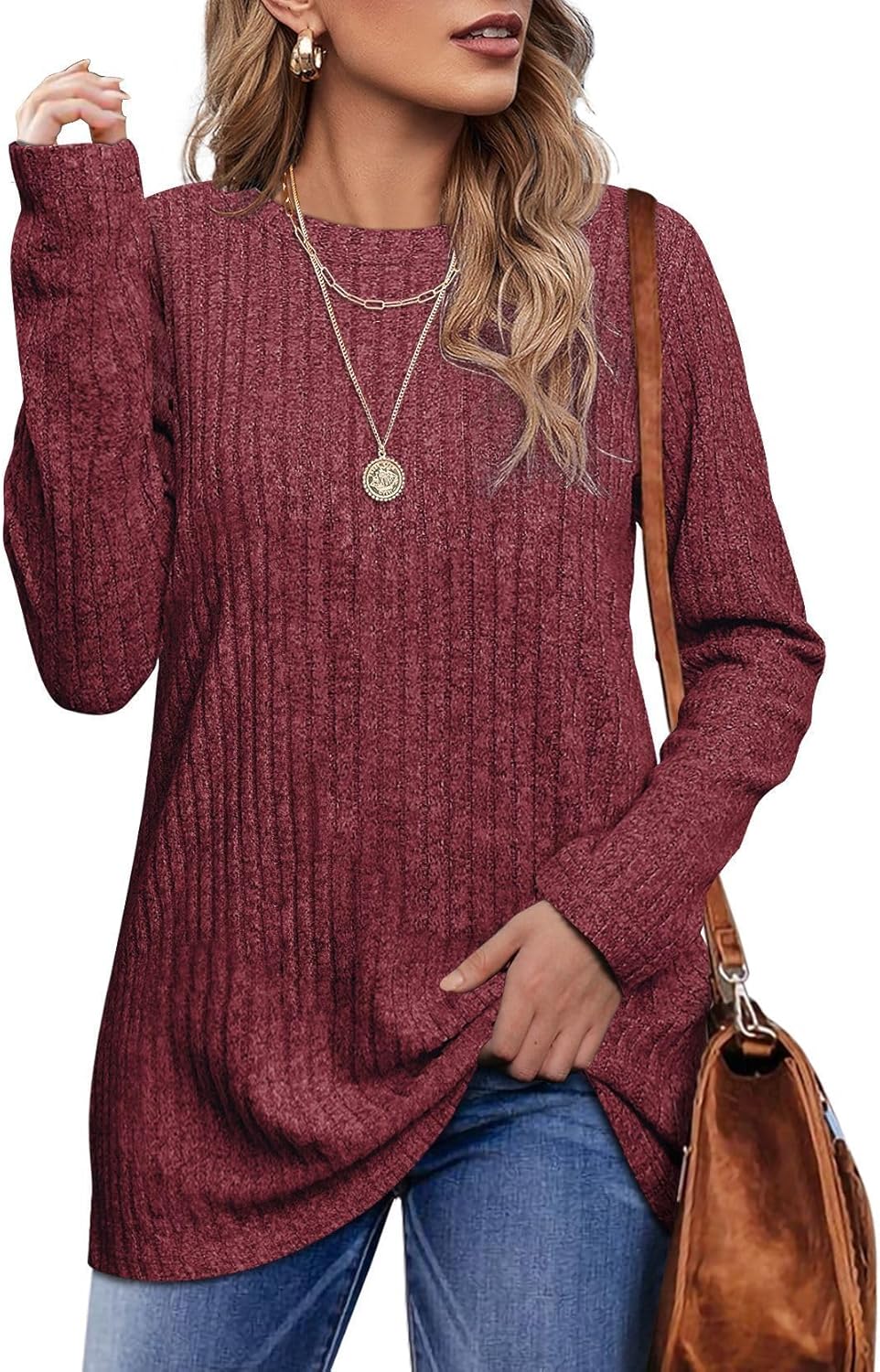 OFEEFAN Long Sleeve Shirts for Women Loose Fit Crew Neck Tunic Tops Blouse Dressy Casual Fall Winter Clothes Outfits