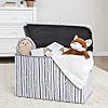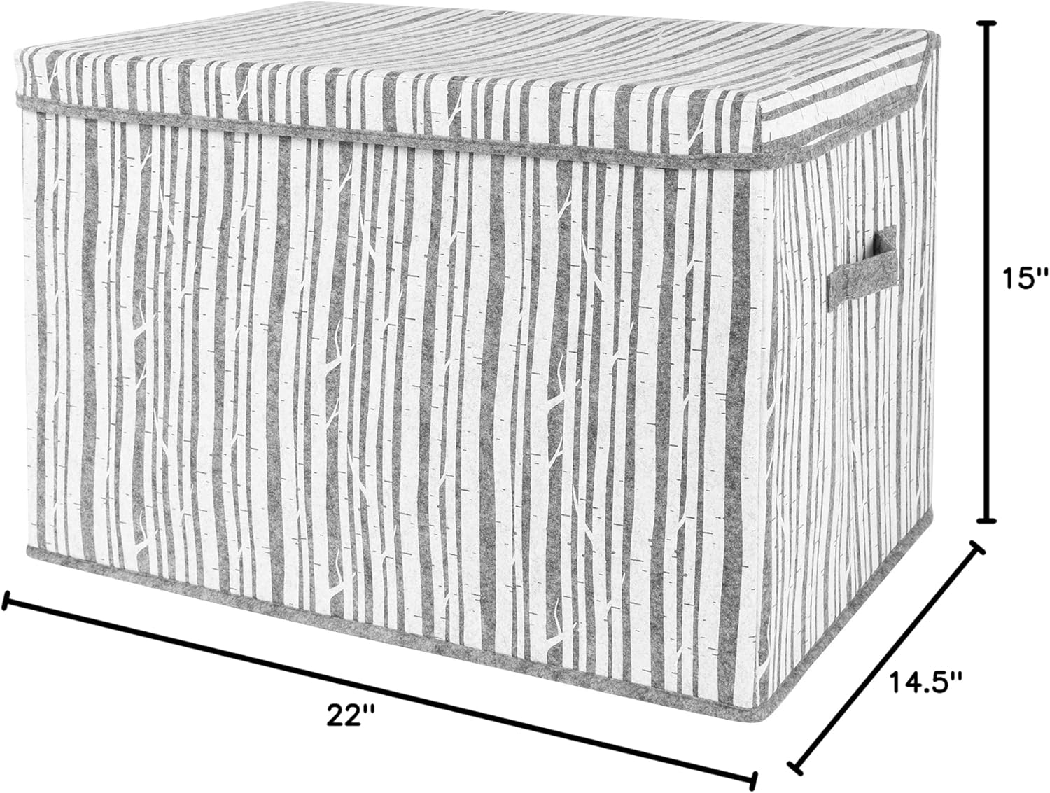 The toy chest features white birch print design on the exterior and a solid gray inner lining; Sturdy felt handles allow easy transport