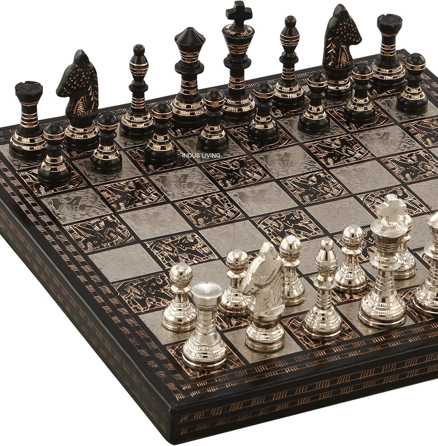 Juego de Ajedrez Premium Lujoso y Decorativo | 10 x 10 Pulgadas | Negro y Plata | Conjunto de Ajedrez Coleccionable y Hecho a Mano para Profesionales y Adultos para Torneos/para Regalar por INDUS LIVING
