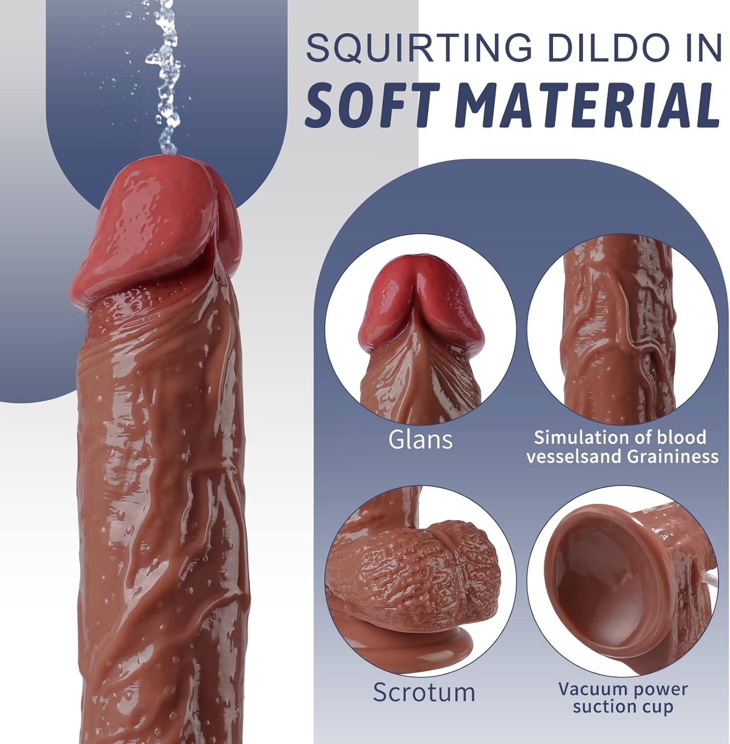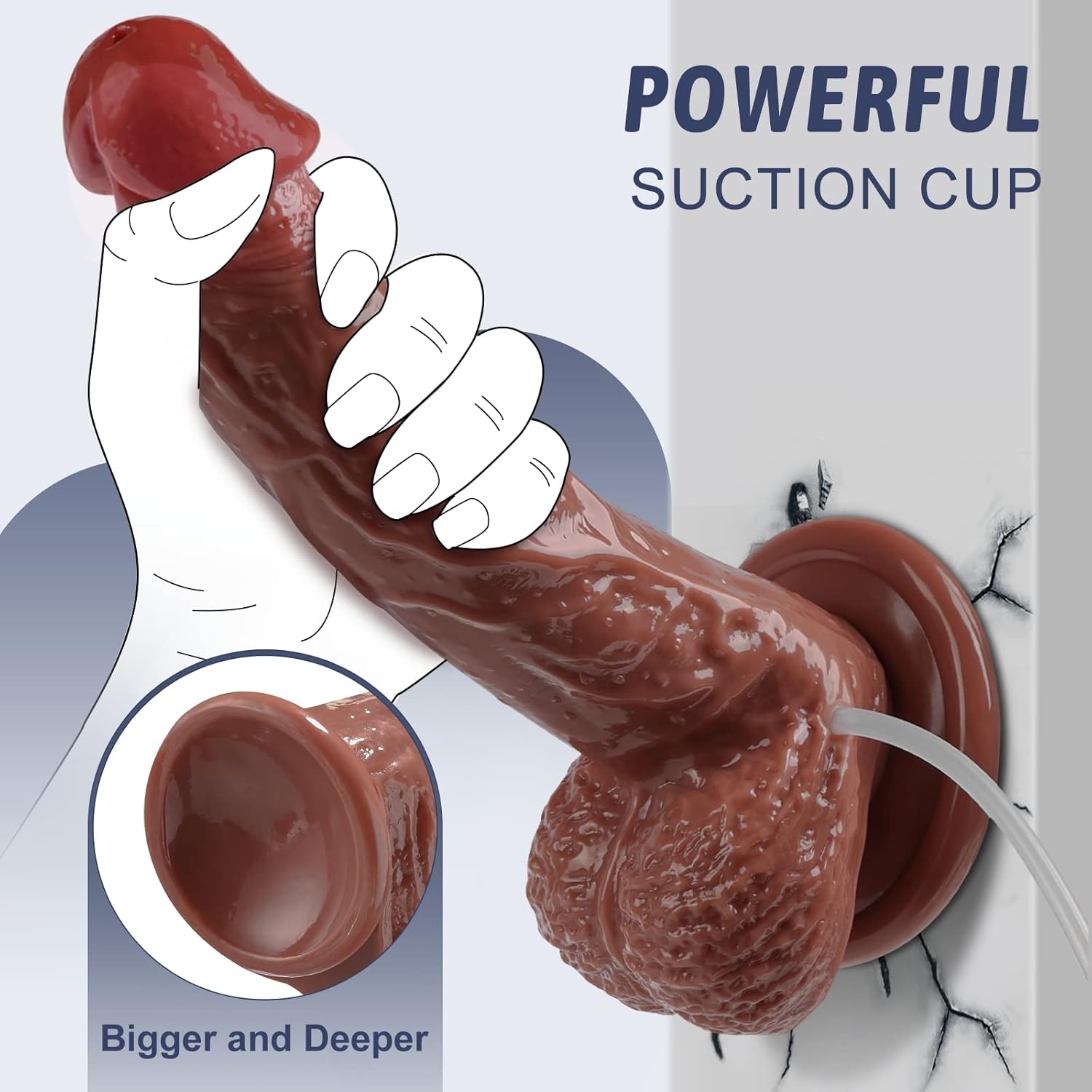 Dildo realista que eyacula con ventosa fuerte para principiantes para juego sin manos, dildo suave con eje curvado y bolas para punto G femenino y juego anal de próstata 8.07 pulgadas