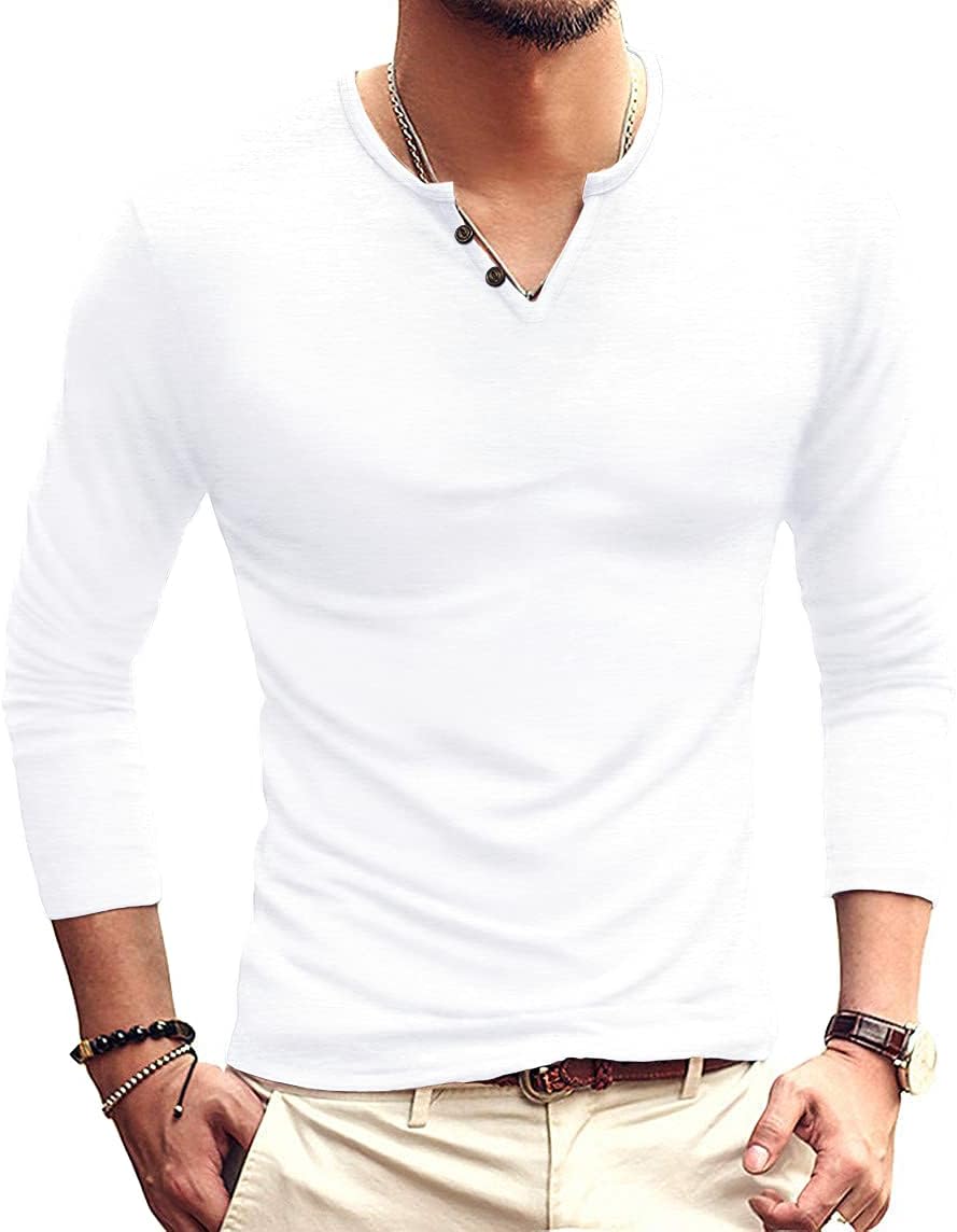 Men's Casual Slim Fit Basic Henley Short/Long Sleeve Fashion T-Shirt