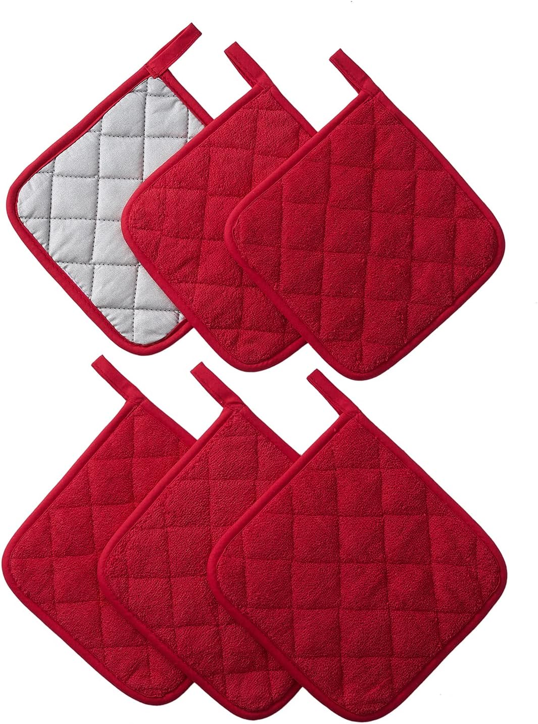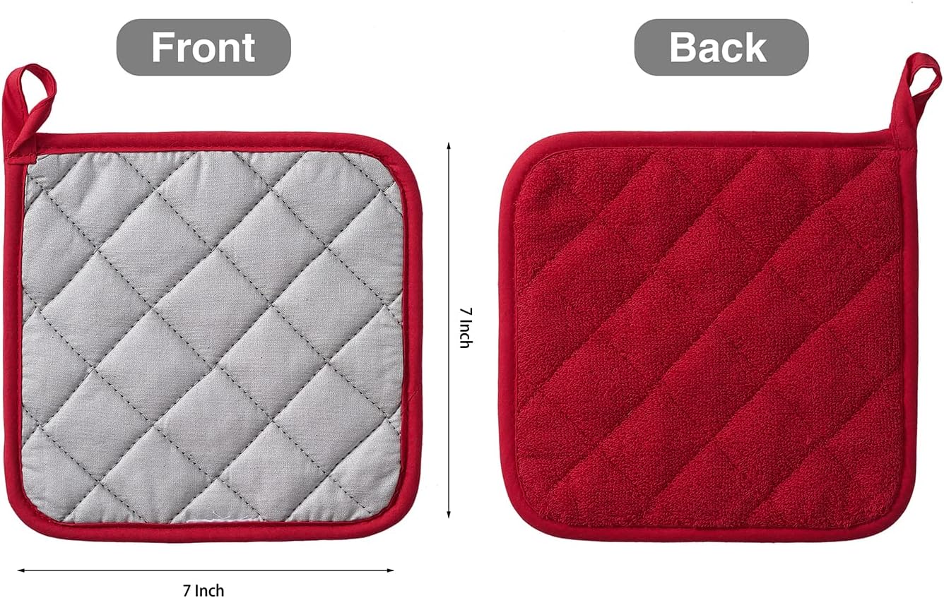 Kitchen Pot Holders Set Heat Resistant Pure Cotton Potholders Kit Trivets Large Coasters Hot Pads Terry Pot Holders for Everyday Cooking and Baking by 7 x 7 Inch Set of 6 Red