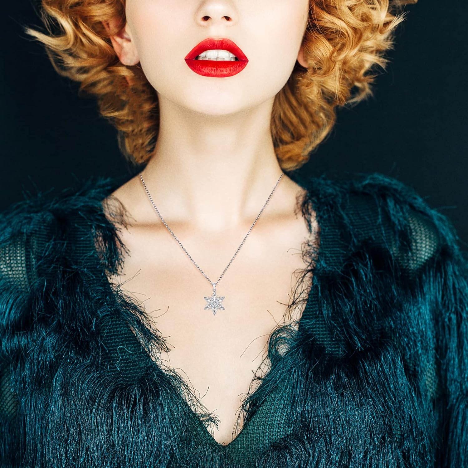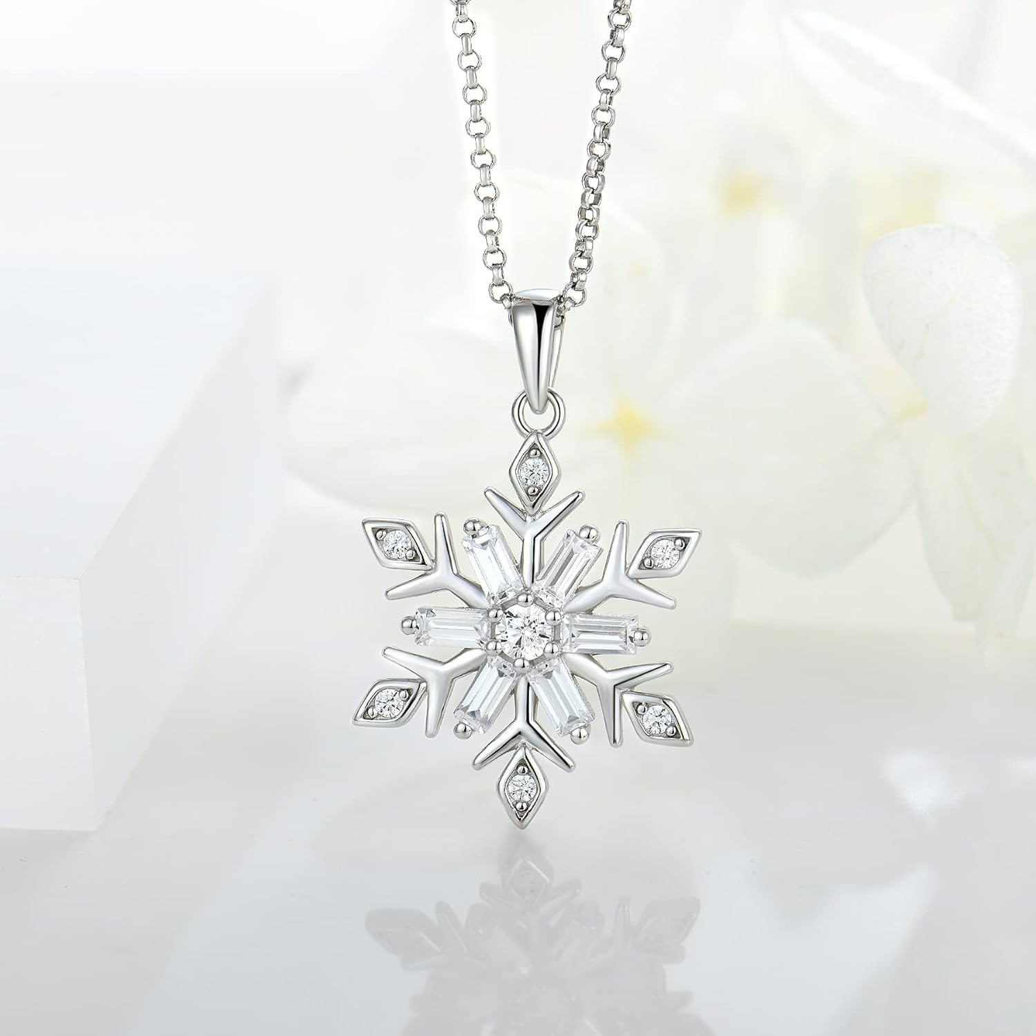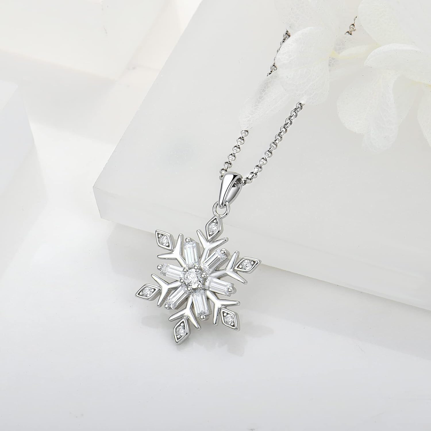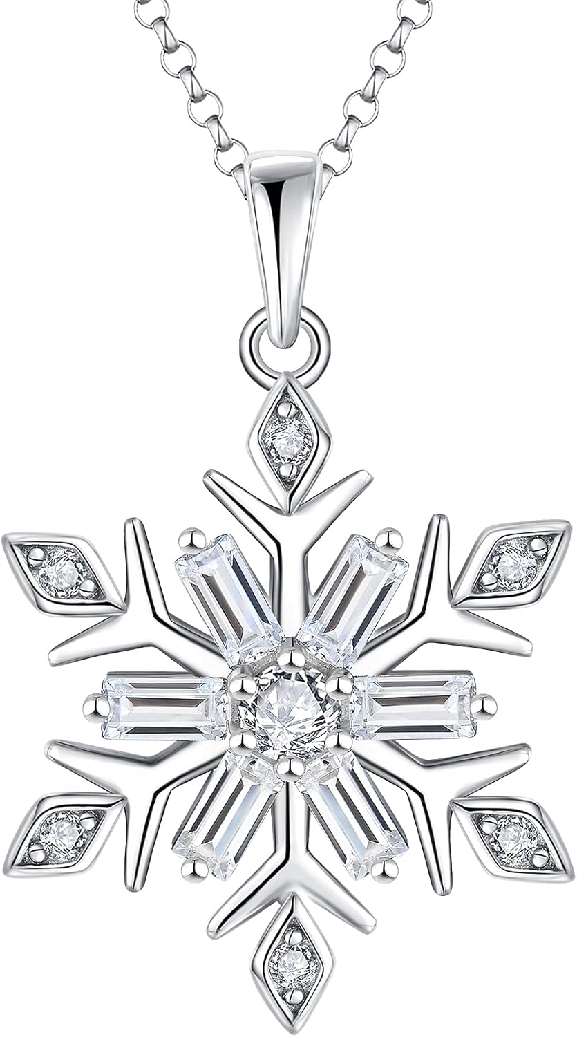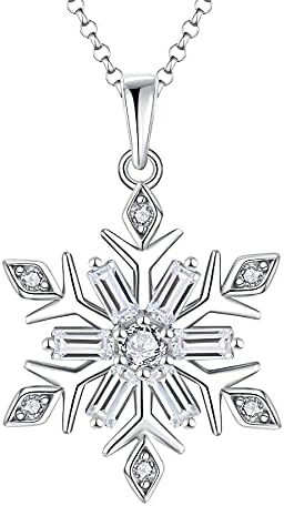 JO WISDOM Snowflake Necklace,925 Sterling Silver White 5A Cubic Zirconia Winter Frozen Snowflake Necklace Pendant,Christmas Jewelry Gift for Women