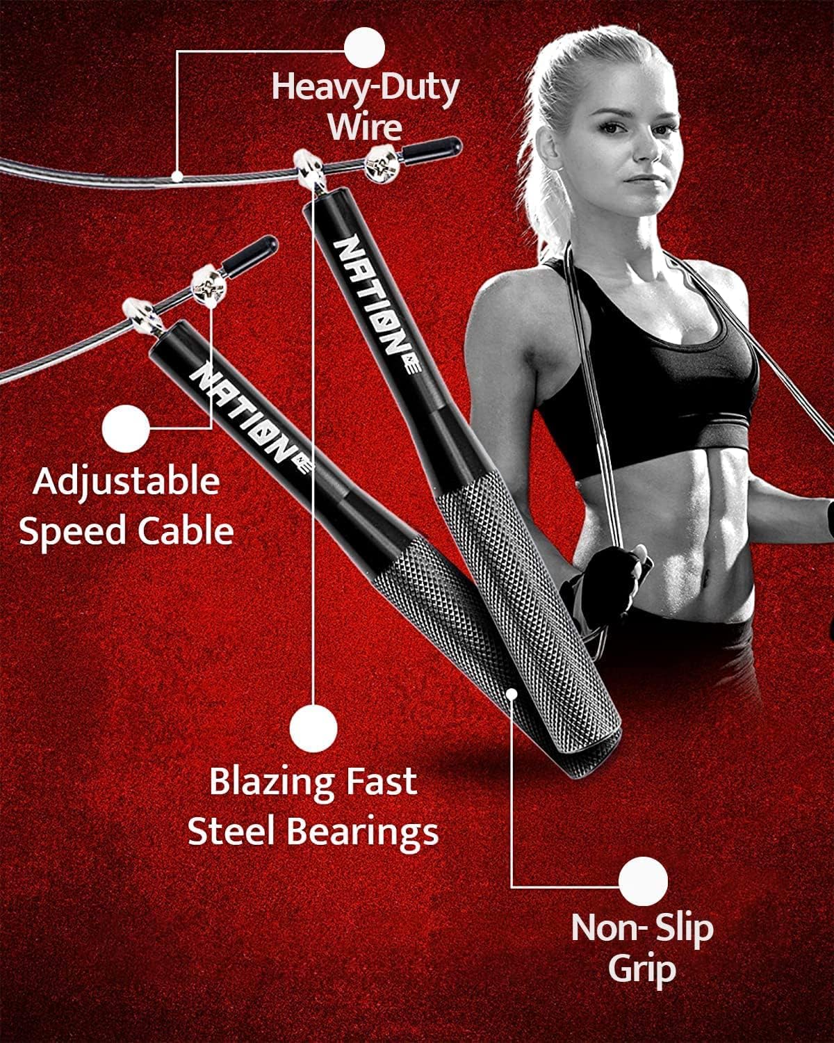 WOD Nation Alluminum Handle High Speed Adjustable Jump Rope for Women and Men Perfect Skipping Rope for Boxing, Fitness, Workout