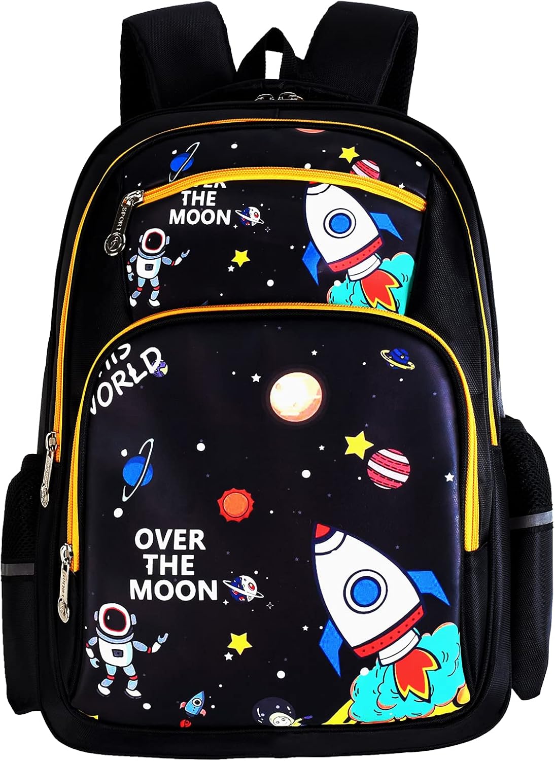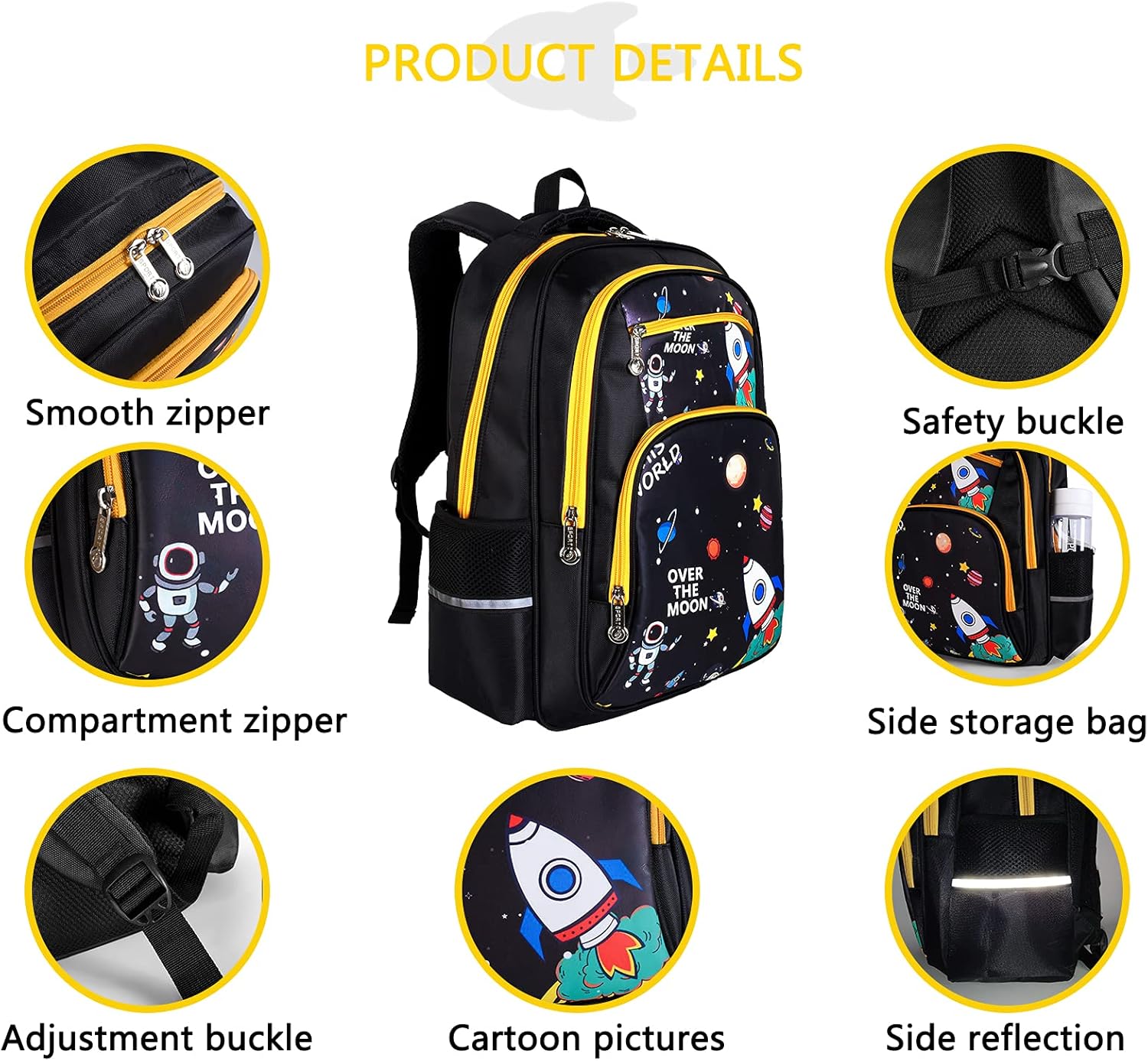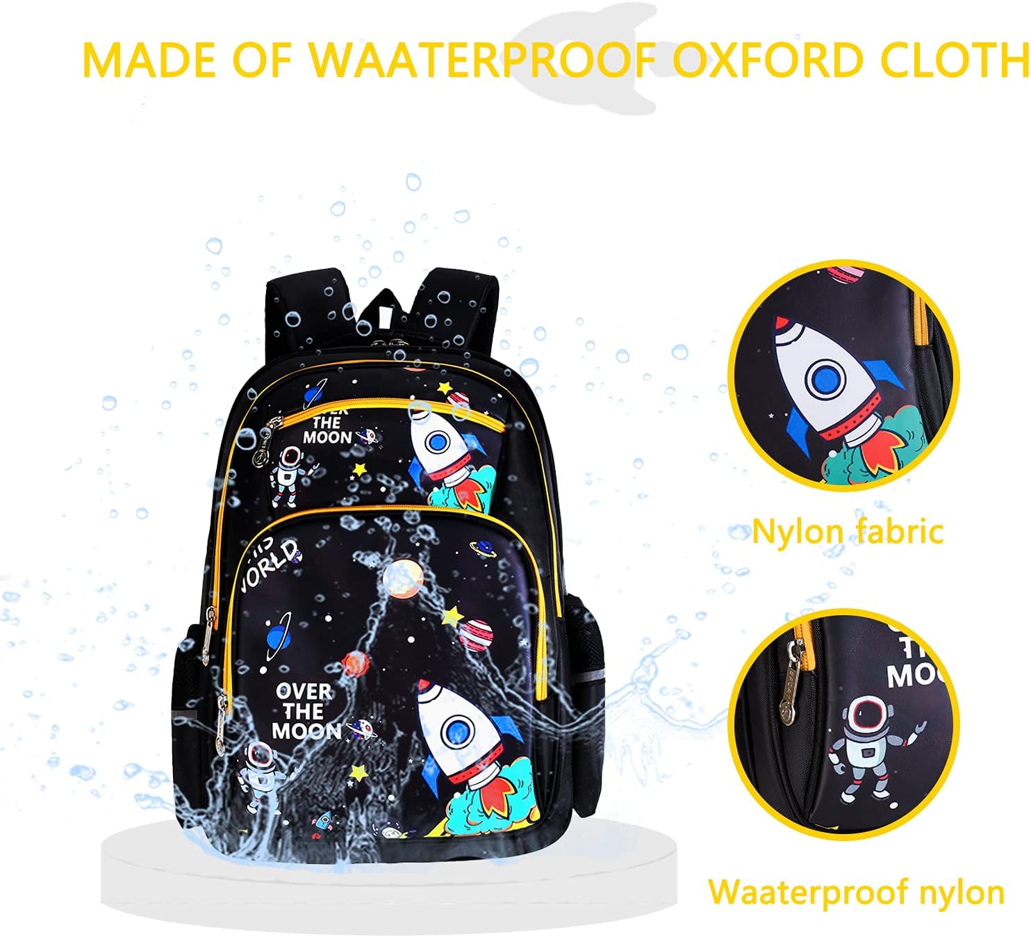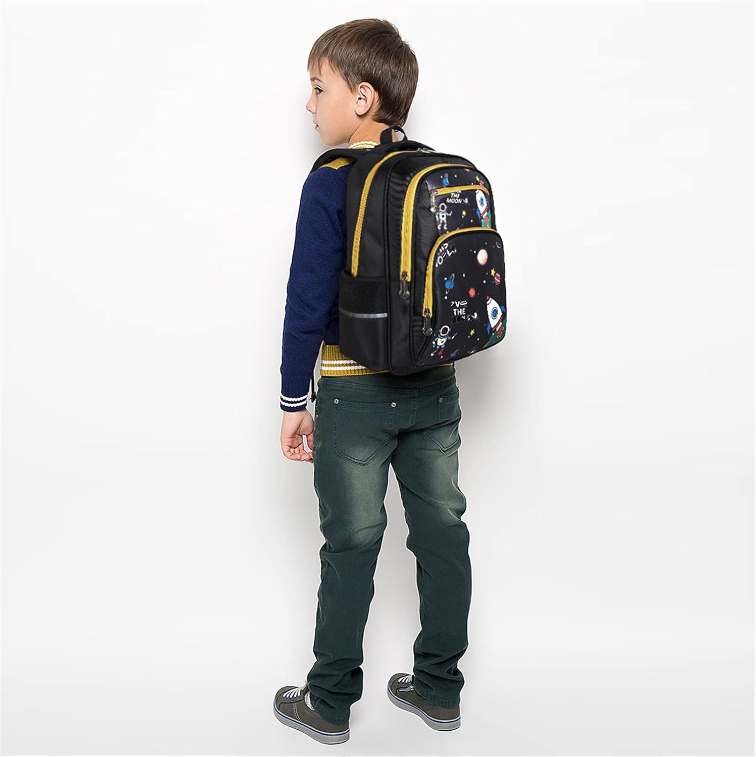 Mochila para niños de Rafaelle Kids con estampados de astronautas, nave espacial alienígena y galaxia. Gran capacidad para preescolar y primaria (negro, 16 * 12 * 7 pulgadas / 40 * 30 * 17 cm)