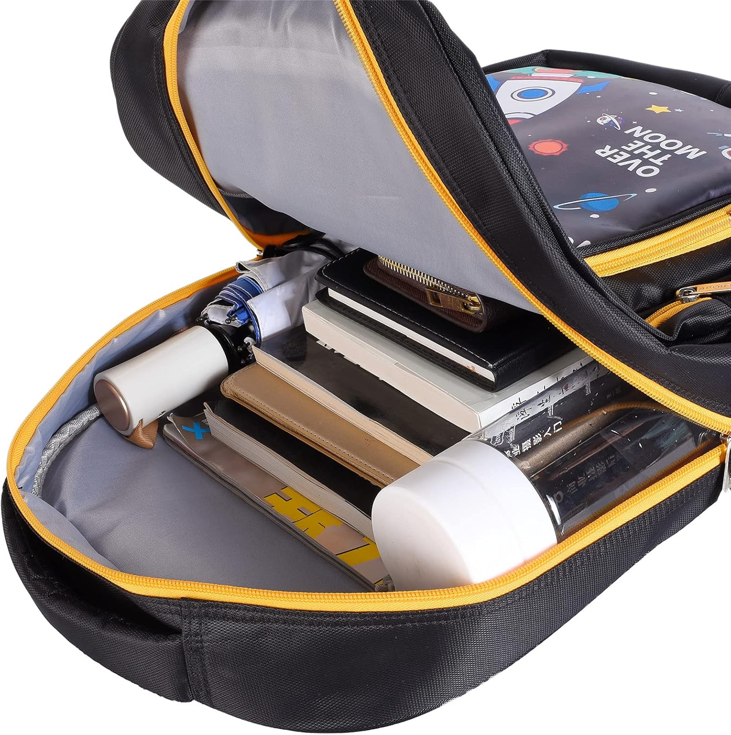 EL TAMAÑO PERFECTO — Esta mochila para niños con estampados de nave espacial alienígena y galaxia mide 16 * 12 * 7 pulgadas / 40 * 30 * 17 cm, con capacidad adecuada para los suministros diarios y escolares de los niños. Ideal para bocadillos después de clases, juguetes, herramientas y accesorios, esta mochila es perfecta para jardín de niños, preescolar, escuela y viajes. Sus tres compartimentos con cremallera y bolsillos interiores con utilidades y portabolígrafos facilitan la organización, ¡así tu hijo puede encontrar lo que necesita en un instante!