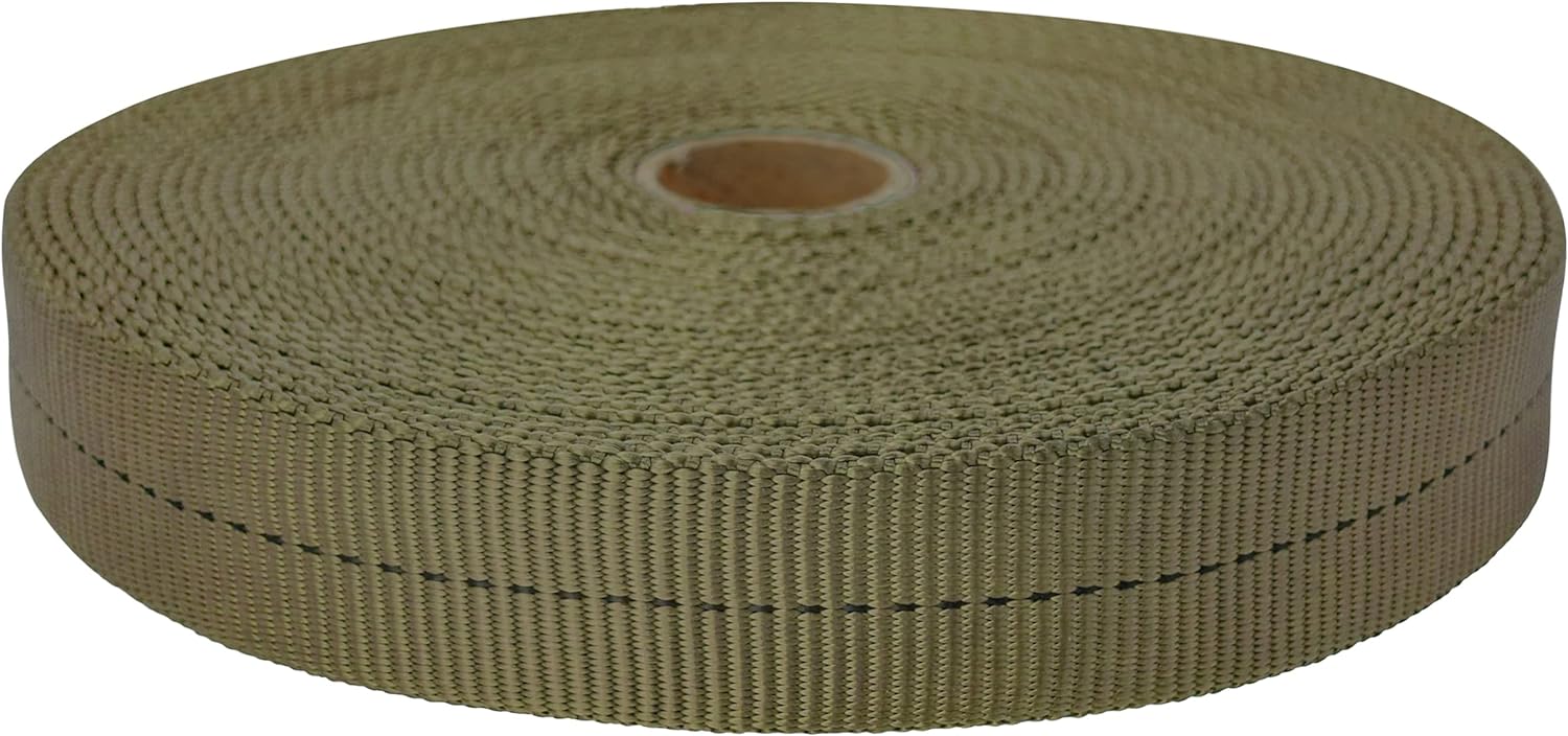 MIL-W-5625 Milspecs Nylon Tubular Webbing by GM CLIMBING, 1 inch wide to withstand over 4000lb / 17.8kN breaking strength, made out of 100% nylon 6.6 for excellent durability and toughness. Favored by climbers, rescue specialists, and outdoorsmen in the military, parachute, and tough outdoor applications, making a wide variety of straps, slings, anchor systems, tactical gears, parachute static lines, shot bags, heavy-duty tie-downs, lashing, and more.