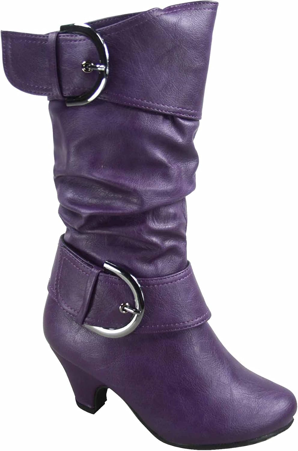 FZ Auto-9ks Girl's Kid's Fashion Cute Round Toe Buckle Dress Side Zipper Low Heel Boots Shoes