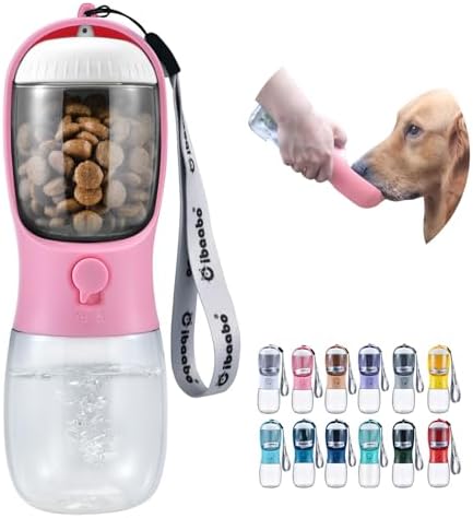 Dog Water Bottle with Food Container, Travel Puppy Water Bowl, Portable Pet Dispenser, Girl Dog Accessories Stuff Items Essentials Necessities for Yorkie Chihuahua Cat Walking and Hiking