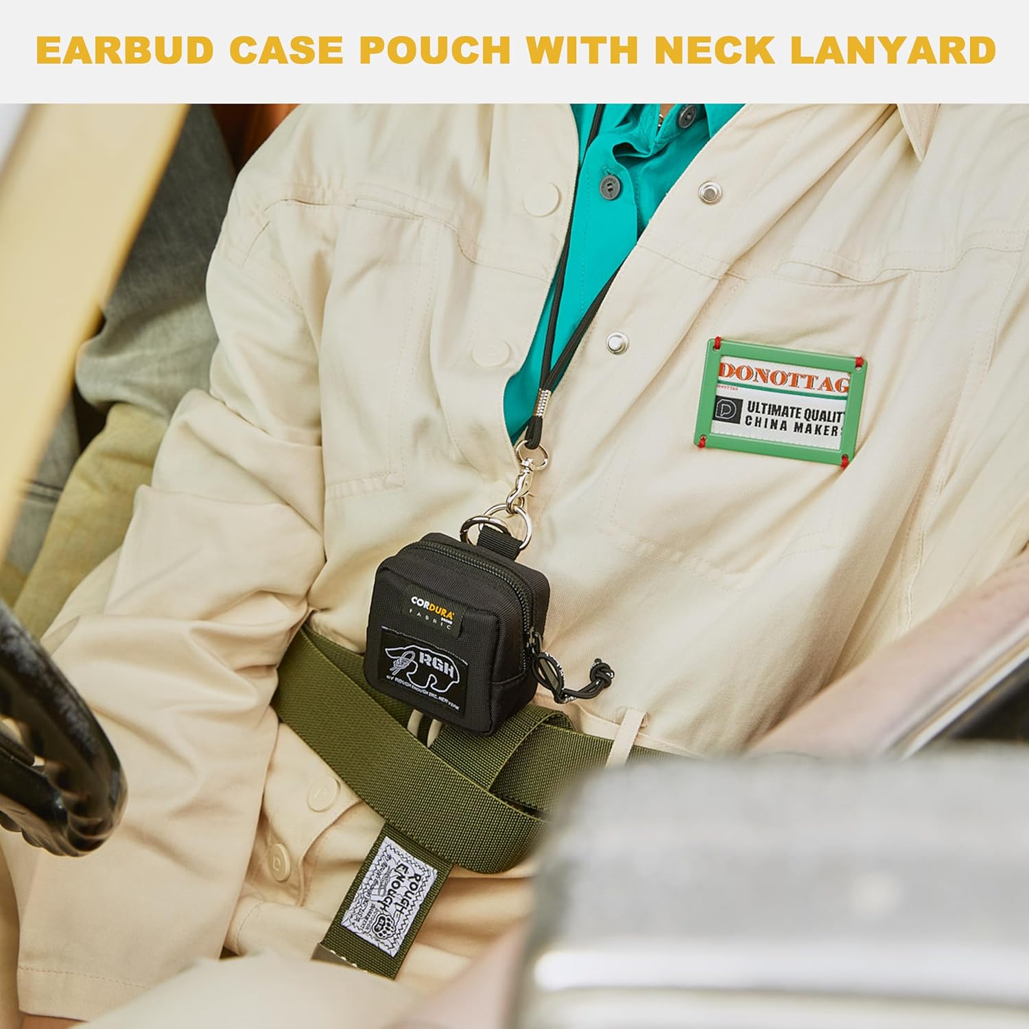 Compact Portability: Measuring 2.5 x 2 x 2.8 inches, the Rough Enough earbud case pouch includes a neck lanyard and keychain for easy attachment to bags during travel, gym, or outdoor activities