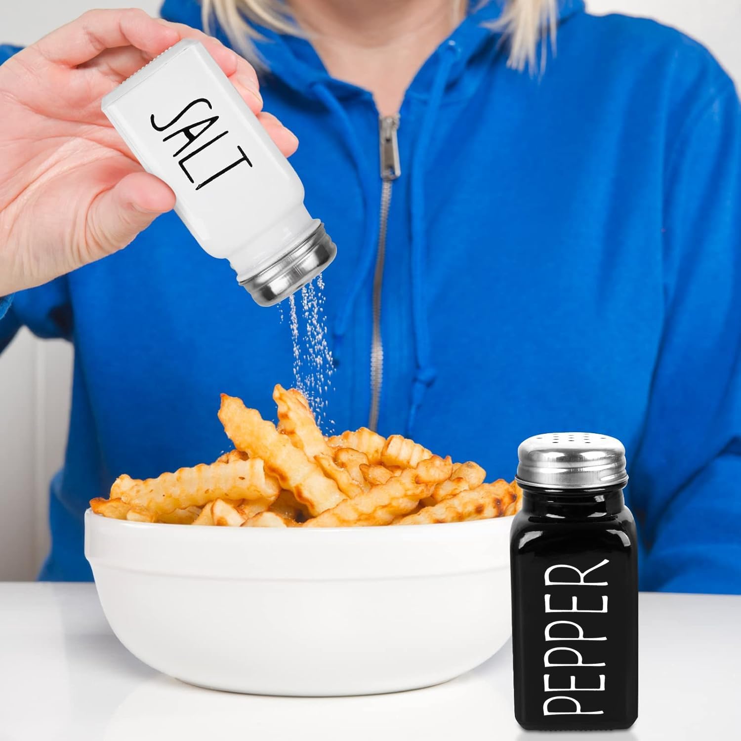 Lovely Farmhouse Design: Made from high quality glass, this vintage glass black and white salt and pepper shaker with stainless steel lid has an exquisite and lovely look. Inspired by modern styling and an old country decor look, these salt and pepper shakers will add a retro feel to your home decor. Perfect for cute kitchen accessories and country home accessories.