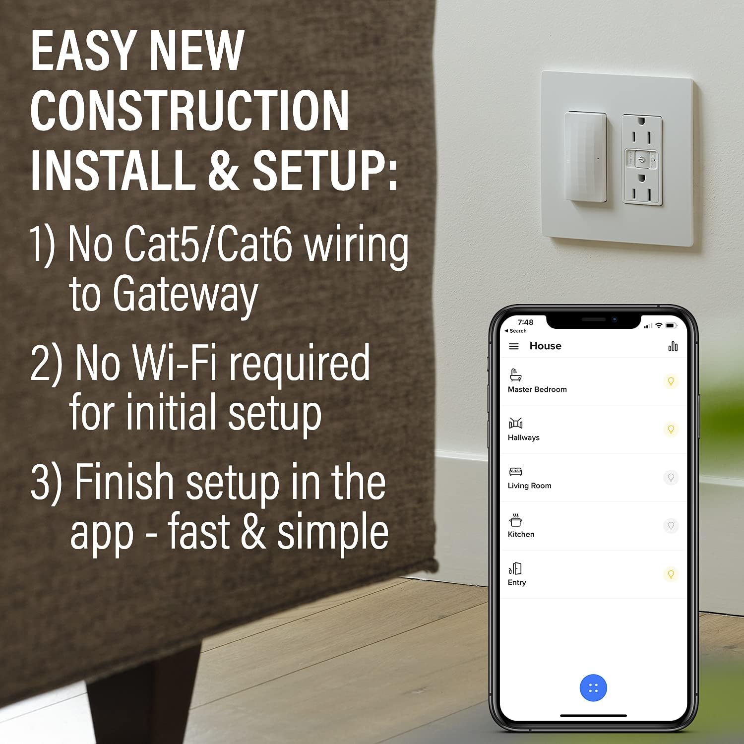 Flexibly fits a home's unique needs with a variety of supported smart switches, dimmers and outlets, including wireless switches and dimmers. Available color options include White, Light Almond and Nickel.