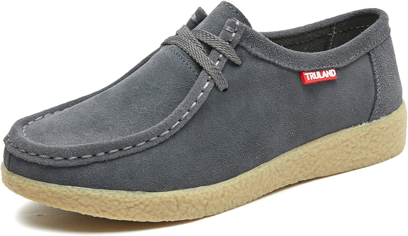 TRULAND Leather Oxford Shoes for Women - Suede Lace Up Moc Toe Low Platform Flat Wallabees Shoes
